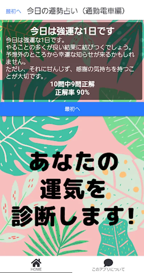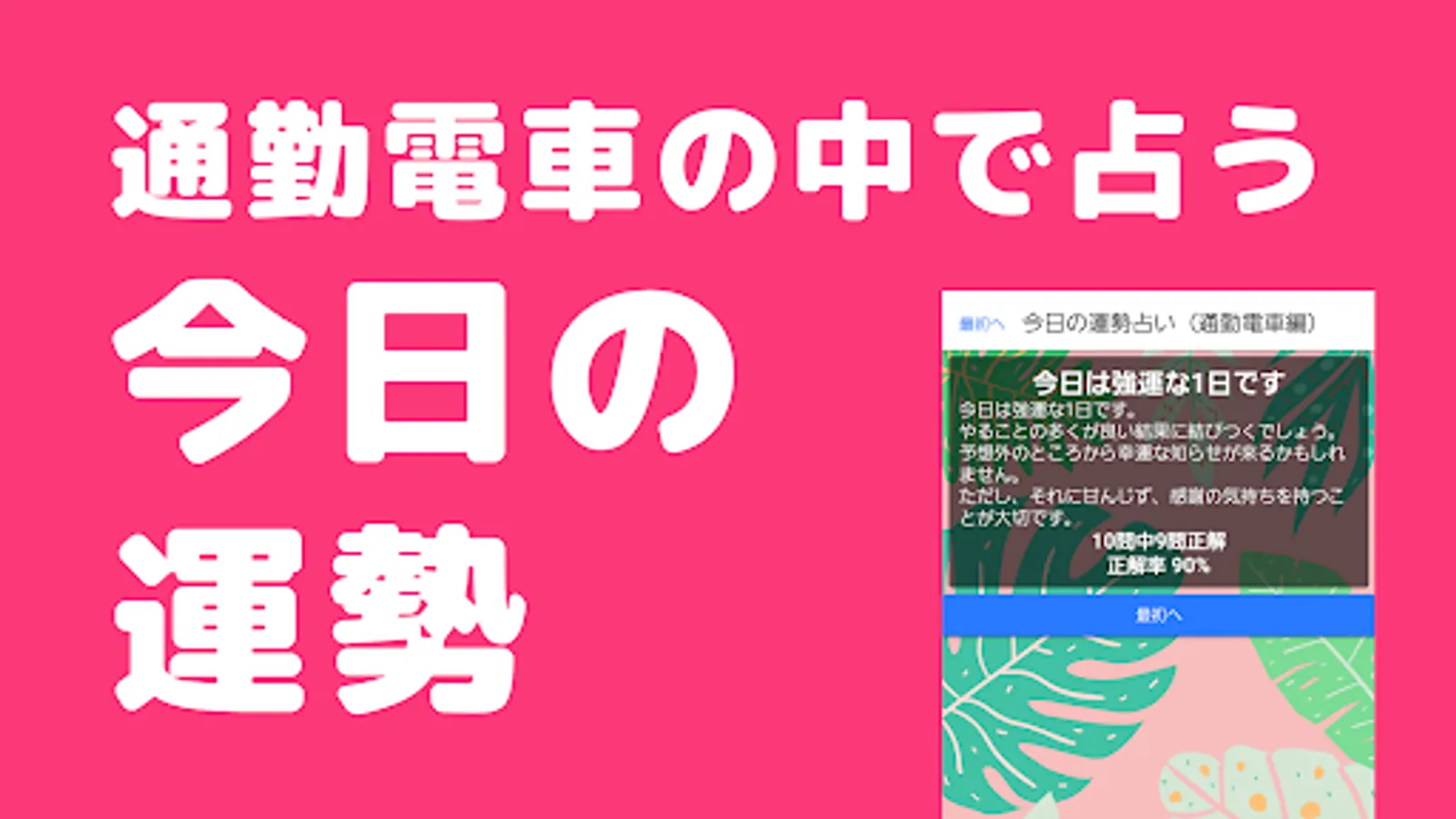 This app diagnoses "now, today's fortune" by answering the characteristic events that are happening to you "now" in a quiz format.