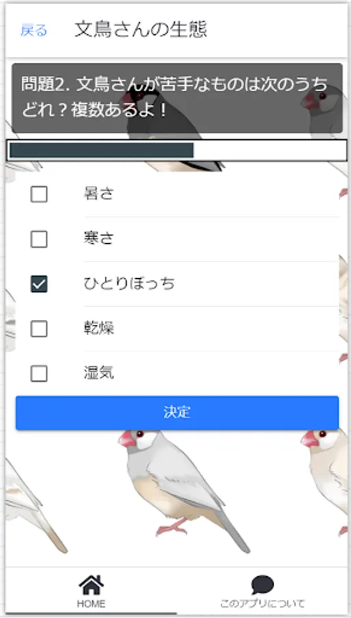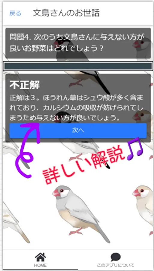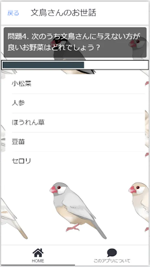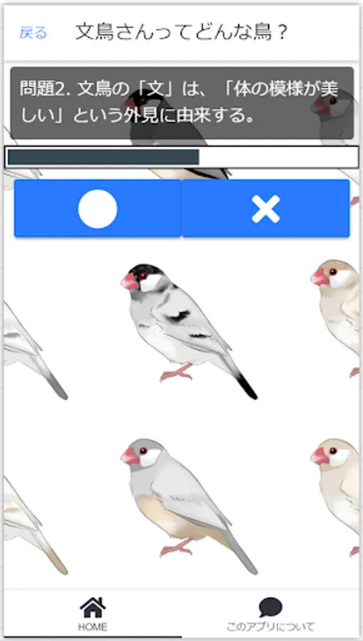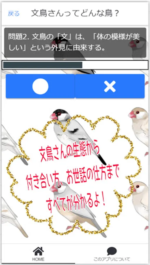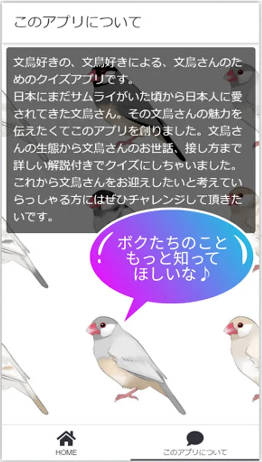 This is a quiz app for Java sparrows by those who like Java sparrows.