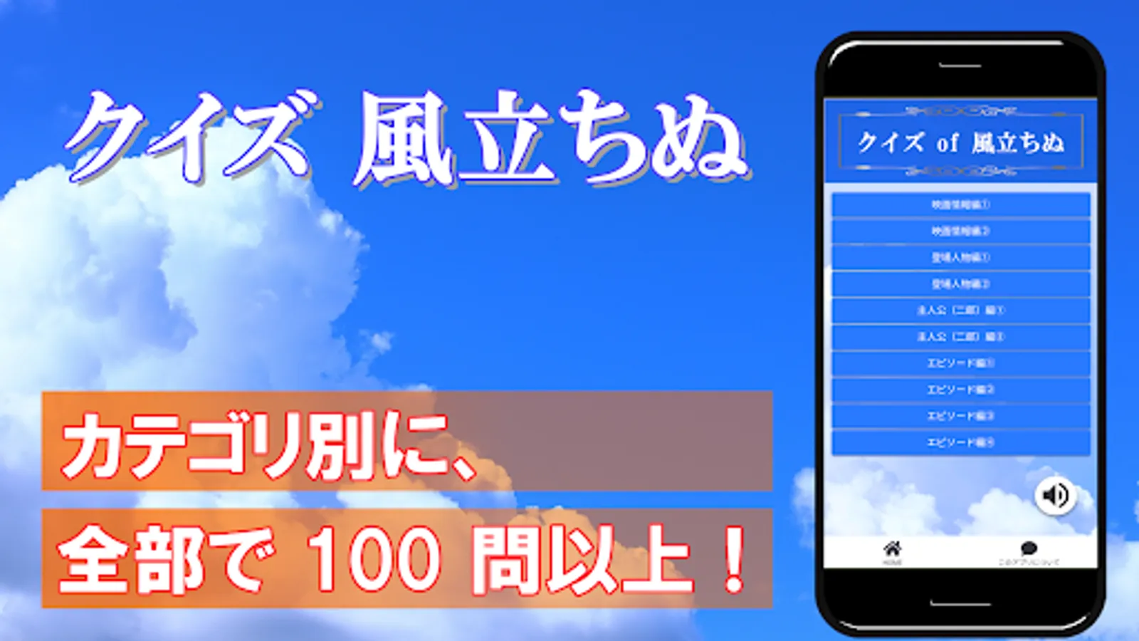 In this app, all questions such as the story of the movie "The Wind Rises", characters and various episodes, music and public information are set by category.