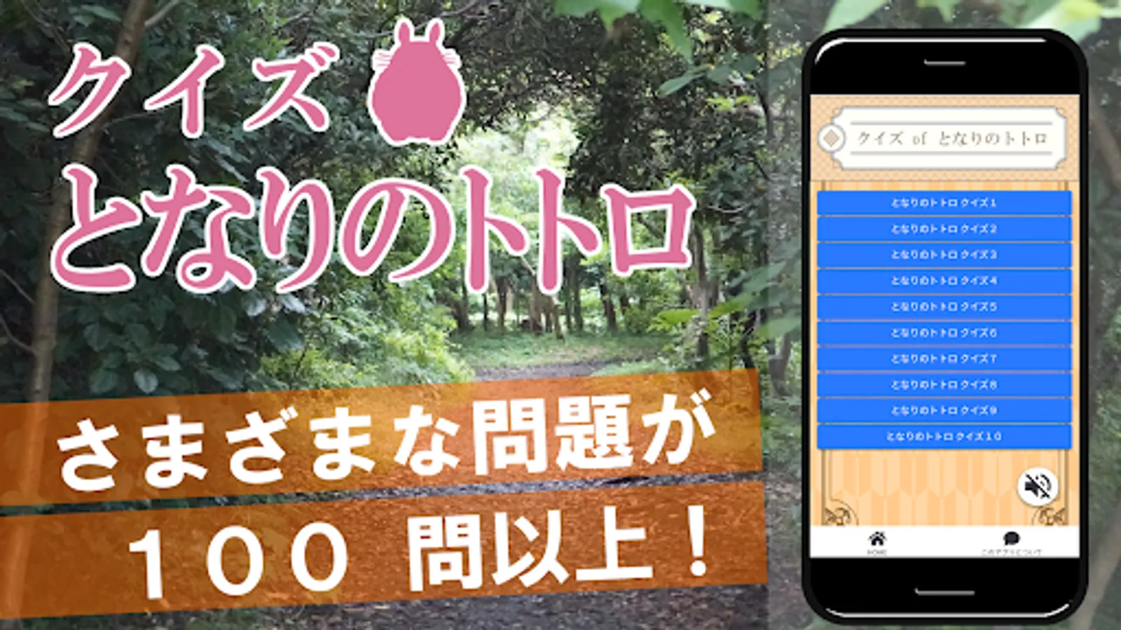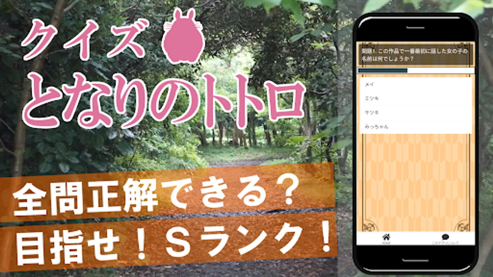 With this app, you will be asked all kinds of questions such as the story of the movie "My Neighbor Totoro", characters and various episodes, music and public information.