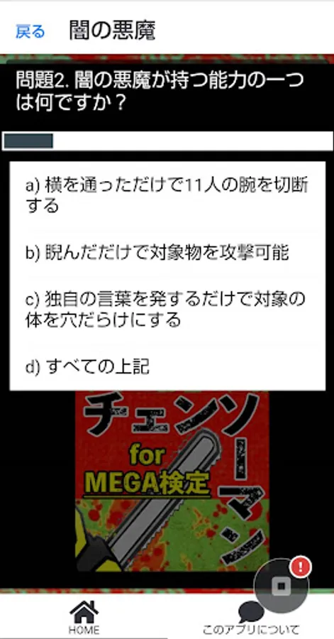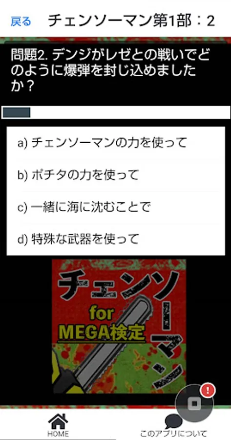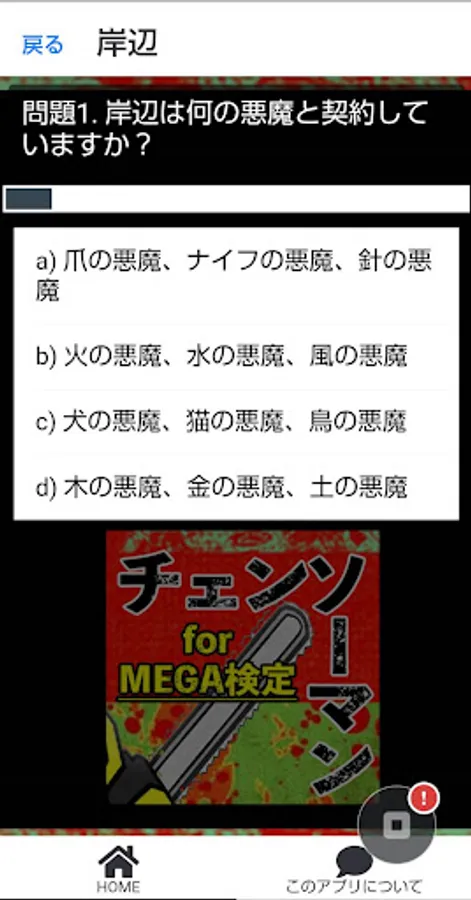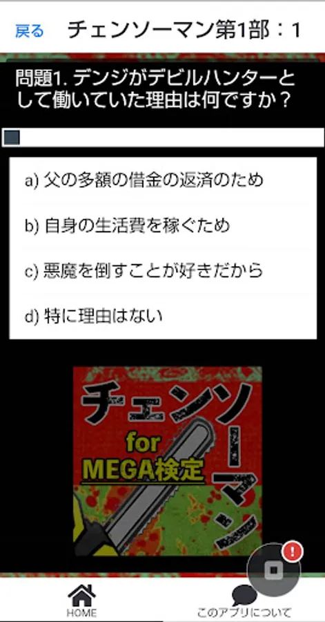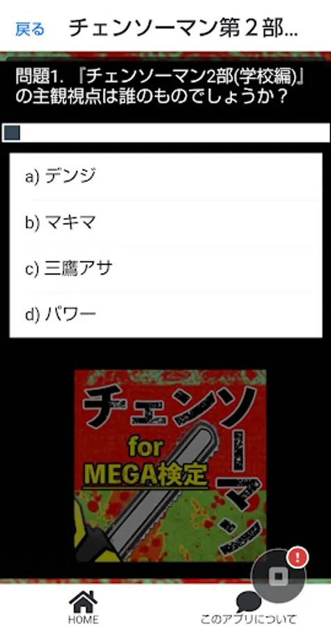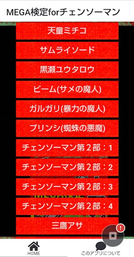 It's time to test your crazy Chainsaw Man passion! "MEGA Test for Chainsaw Man" is a quiz app that covers the entire story of the hit manga "Chainsaw Man". Explore an epic world from a unique perspective and test your knowledge.