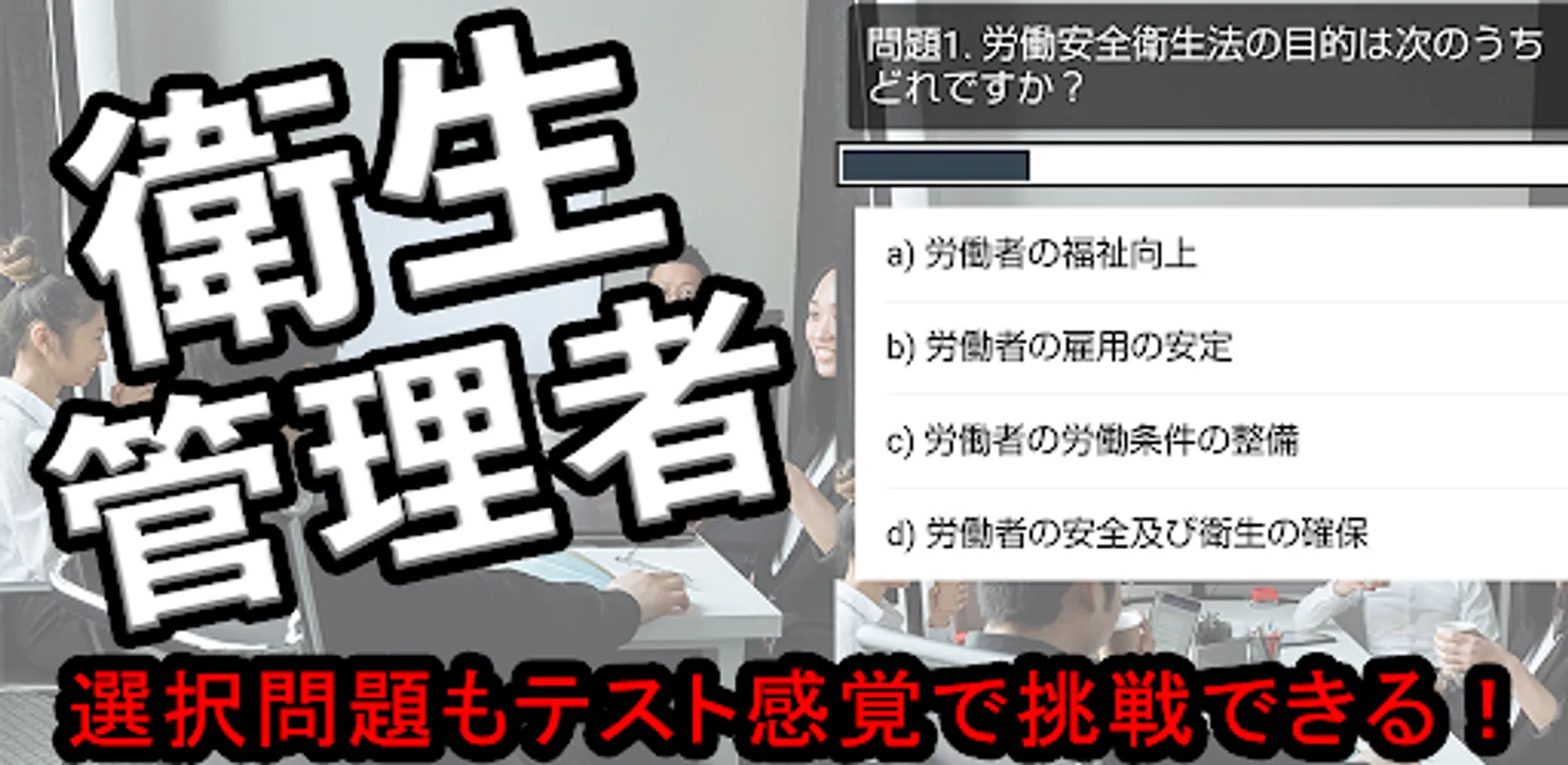 Hygiene Manager Examination Step Quiz is an app that contains a total of 200 questions, including 100 multiple-choice quizzes and 100 〇✖ quizzes related to occupational safety and health, useful for beginners to advanced users. Let's take the best step as a starting point of learning for the national qualification hygiene administrator examination.