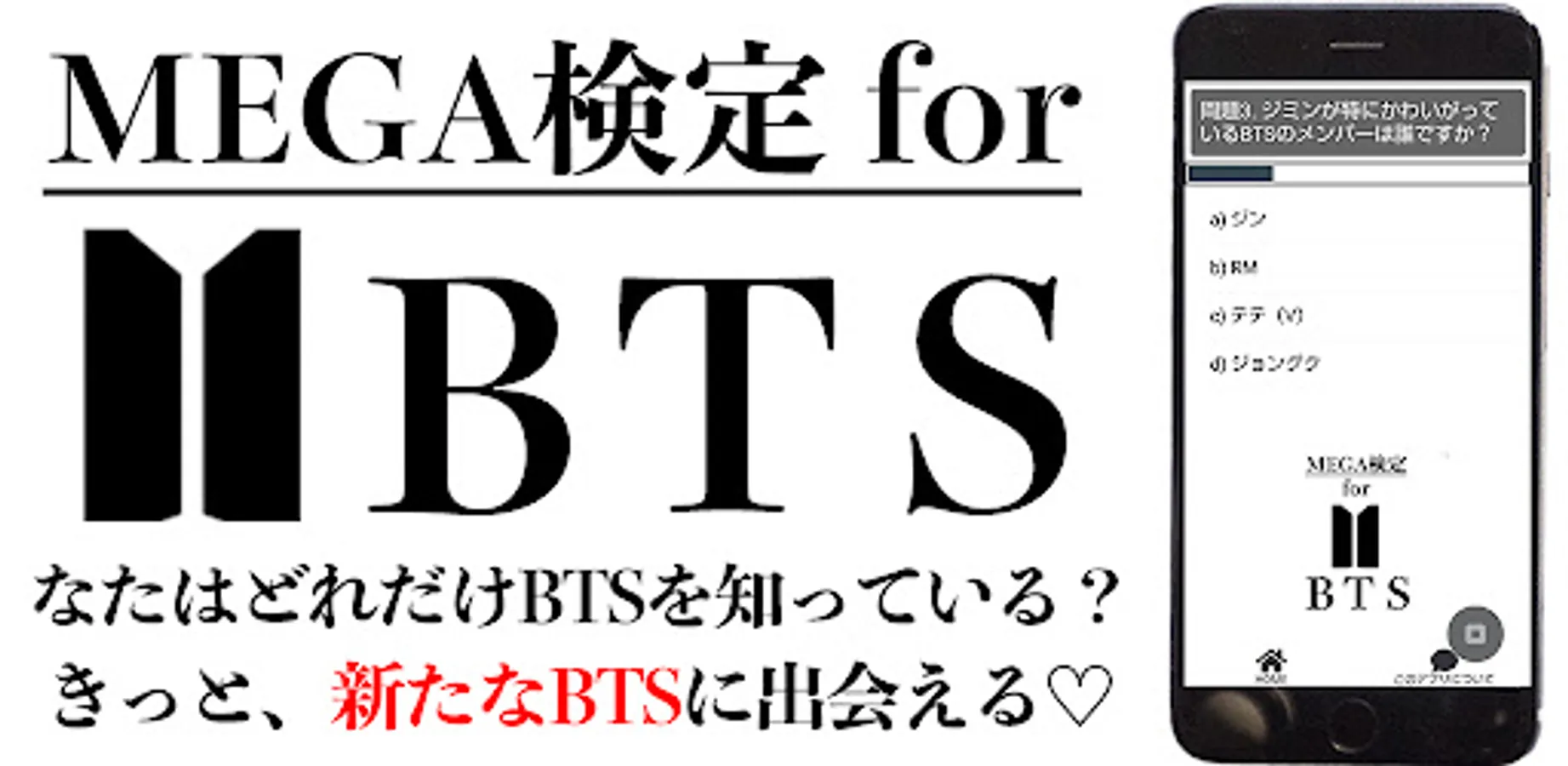 Prove your love for BTS with "MEGA Test for BTS" and pave the way to a new BTS world. Free to download! Test your BTS knowledge now!