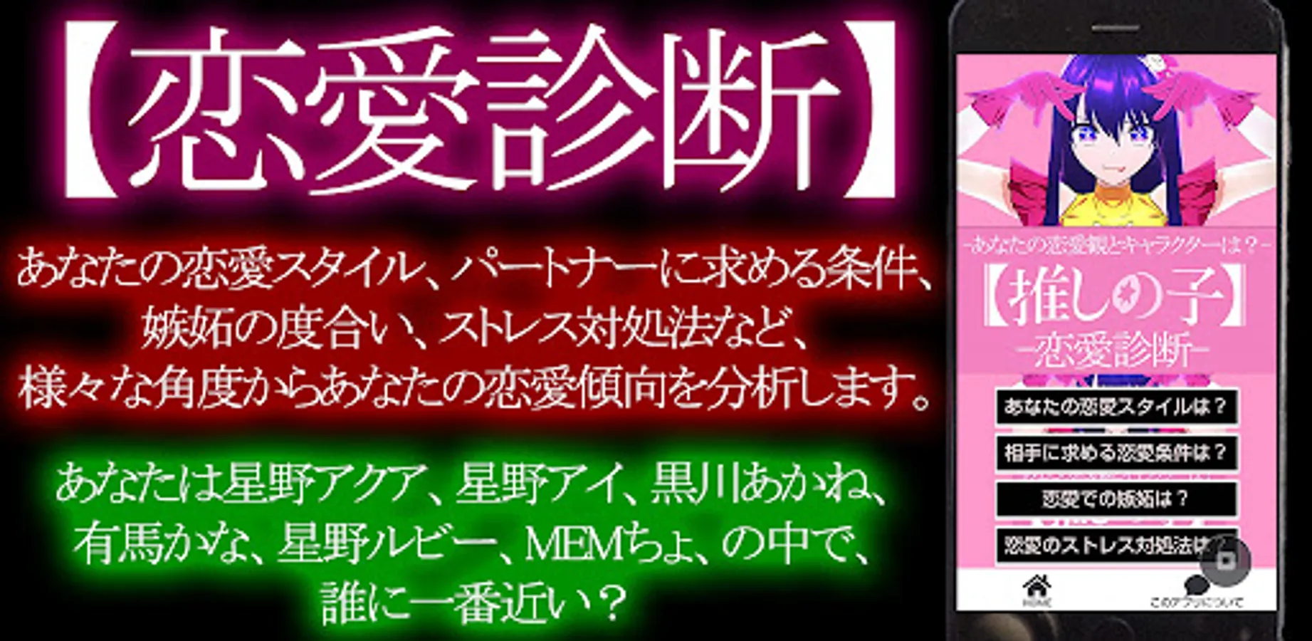 * This app uses an original image that is different from the original "Oshi no Ko". These images are provided by BOOTH and have permission to use.