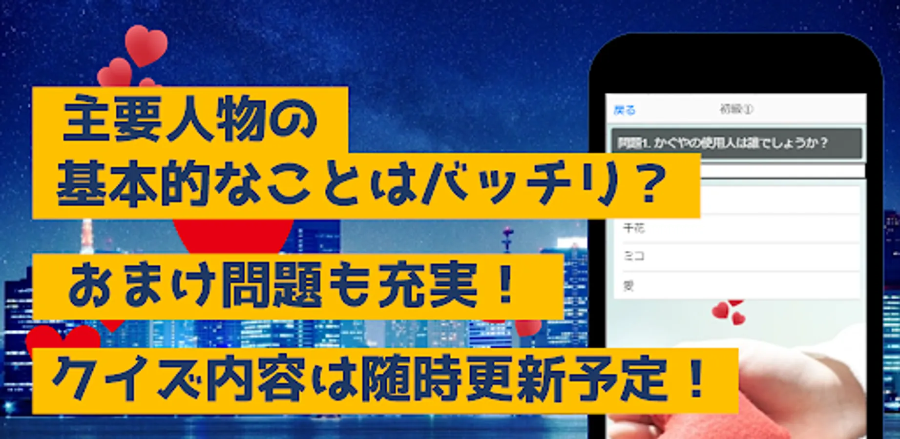 Characters, stories, trivia, movie information, anime, manga, authors, and various other quizzes will be asked from a wide range!