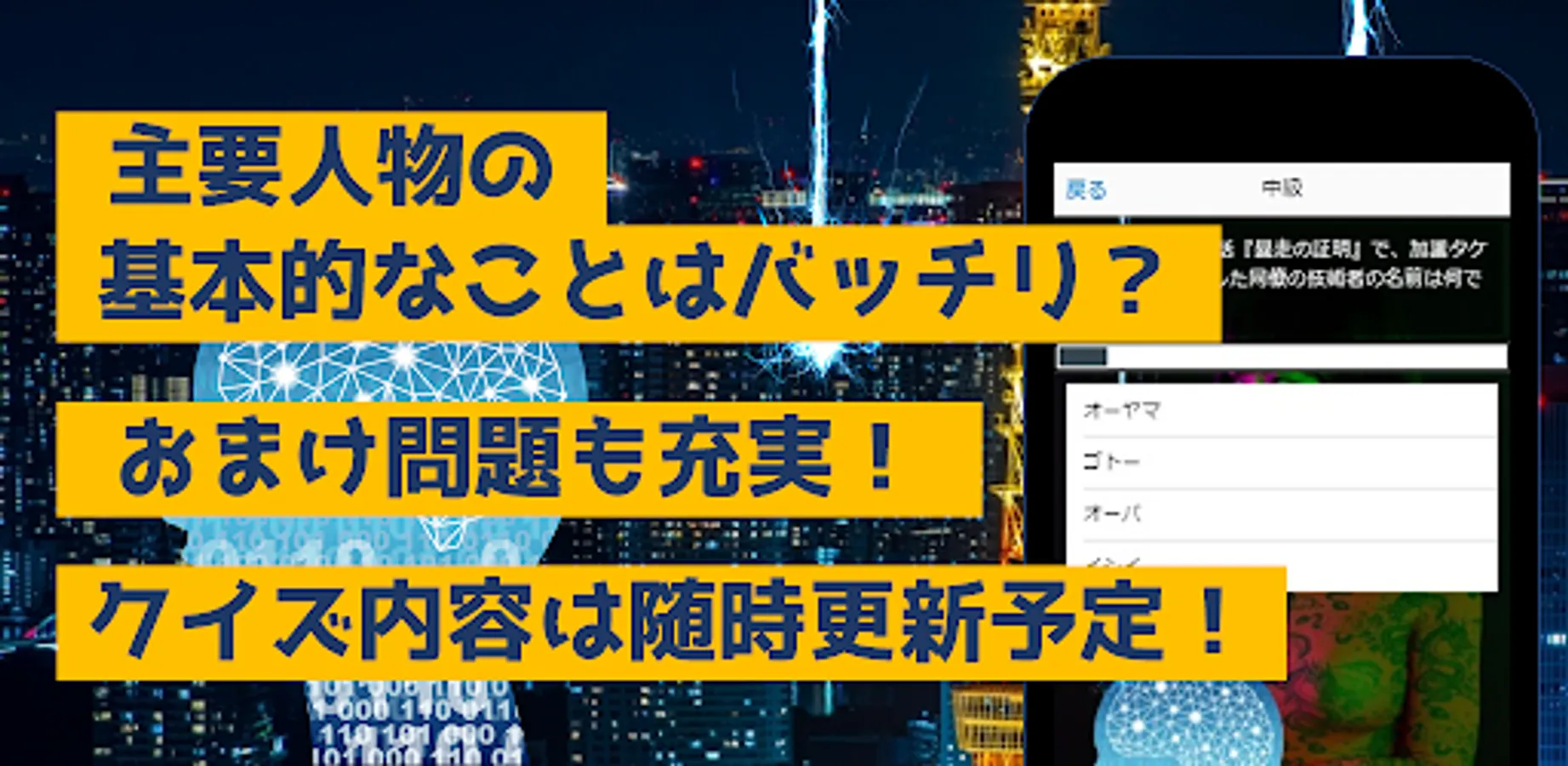 Various quizzes such as characters, stories, trivia, movie information, anime, manga, authors, etc. will be given from a wide range!