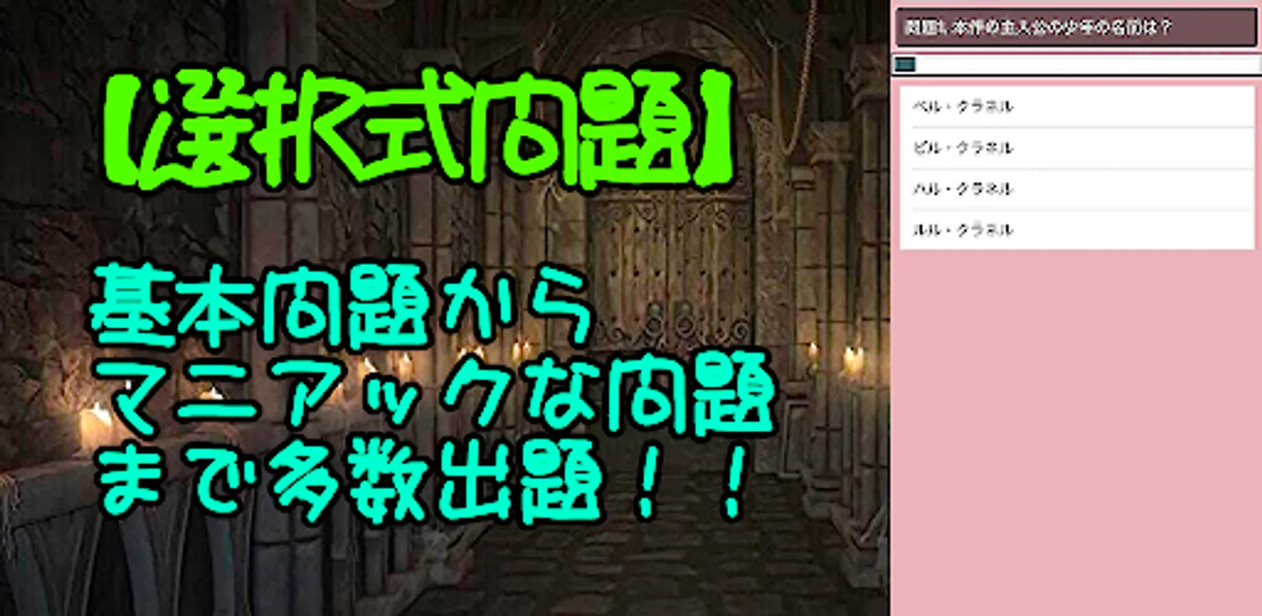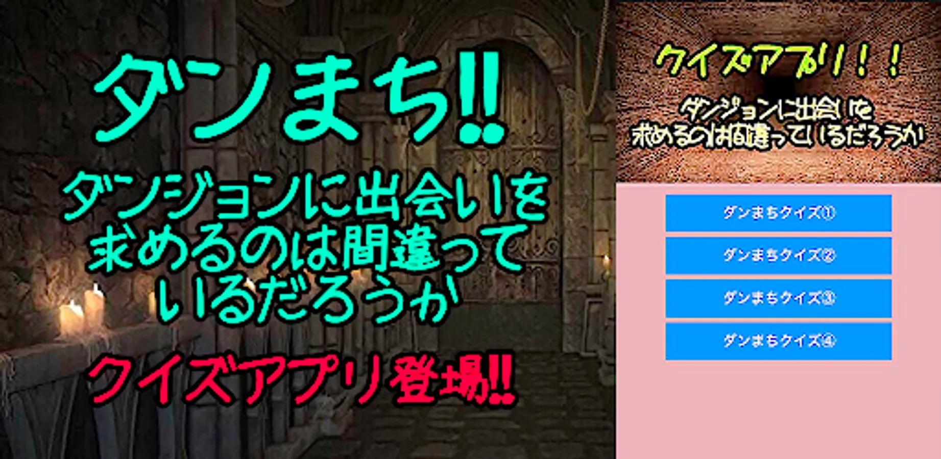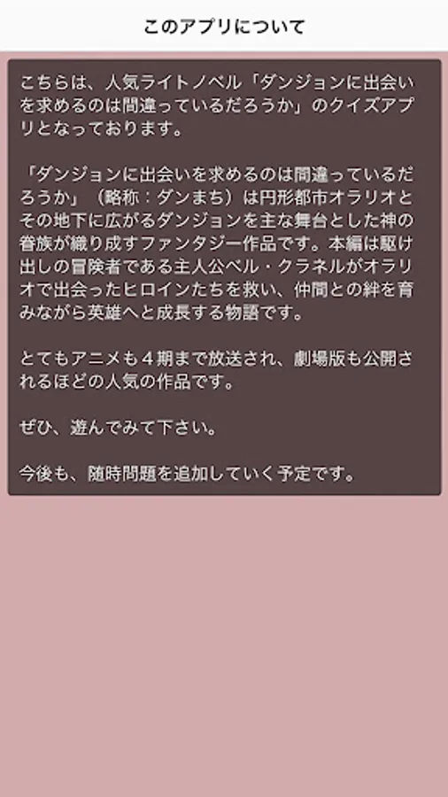 This is a quiz app for the popular light novel "Is it wrong to ask for a dungeon encounter?"