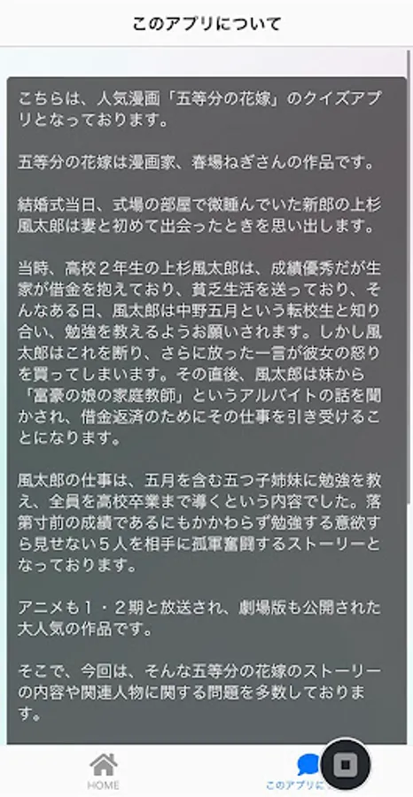 This is a quiz app for the popular manga "The Quintessential Quintuplets".