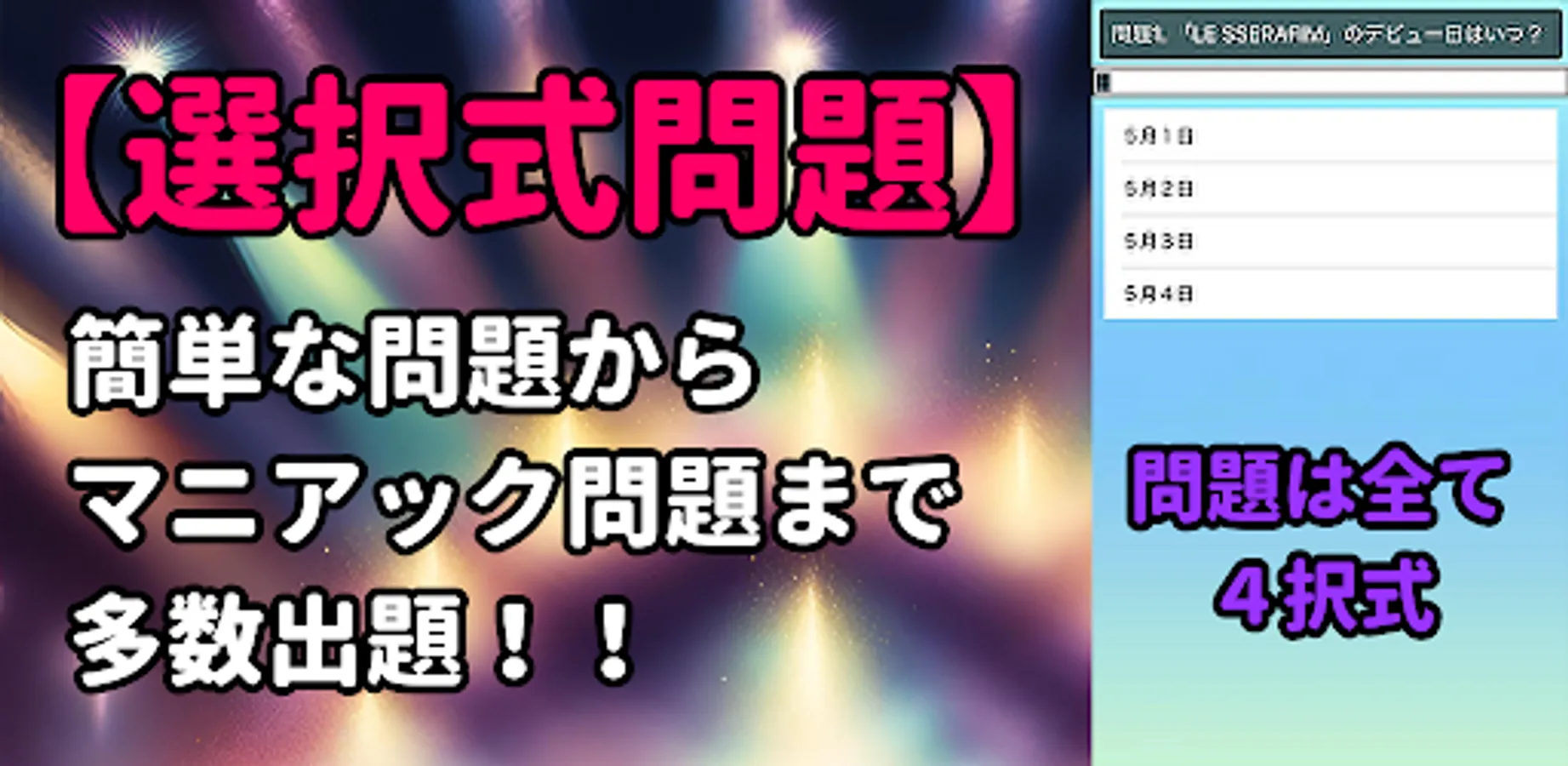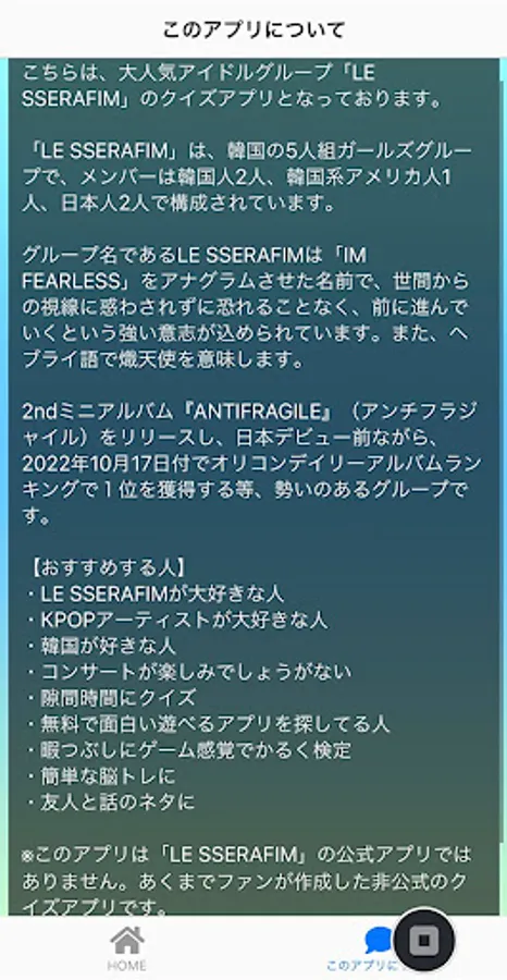 This is a quiz app about the popular idol group "LE SSERAFIM".