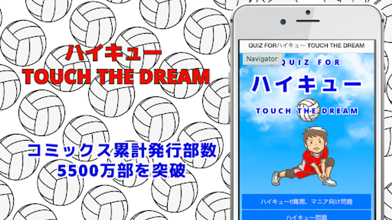 The official quiz app for Haikyu!!'s latest game "Haikyu TOUCH THE DREAM" has appeared! With this app, you can test whether you are an expert in Haikyuu by answering questions about various information obtained by actually playing the game and unknown episodes of the characters. . Questions include a wide range of content, including the main characters of Karasuno High School's volleyball club, Kageyama and Hinata, teams participating in national tournaments, and episodes involving Soji Okita and Teru Kushima. This app is recommended not only for fans who love Haikyuu!!, but also for those who want to deepen their understanding of "Haikyuu TOUCH THE DREAM". Download now and immerse yourself in the world of Haikyu!!