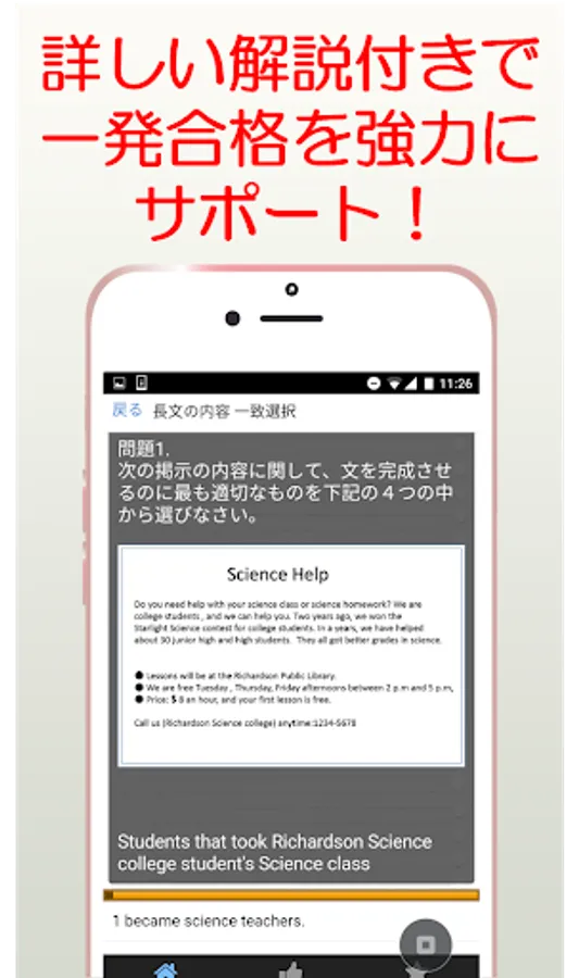 文脈に合う適切な語句を補う、語彙・文法力が問われる空所補充問題,会話文の空所に適切な文や語句を補う空所補充問題、パッセージの内容に関する質問に答える長文の内容一致選択問題、日本文を読み、その意味に合うように与えられた語句を並べ替える短文の語句整序問題と、リスニング以外のすべての筆記試験の出題となります。