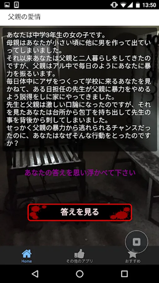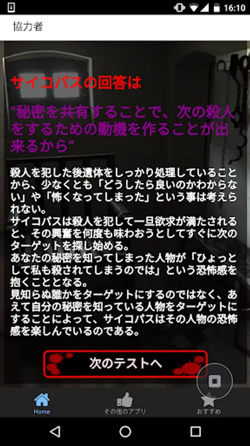 「答えを見る」ボタンをタップして心理テストの答え合わせをします。