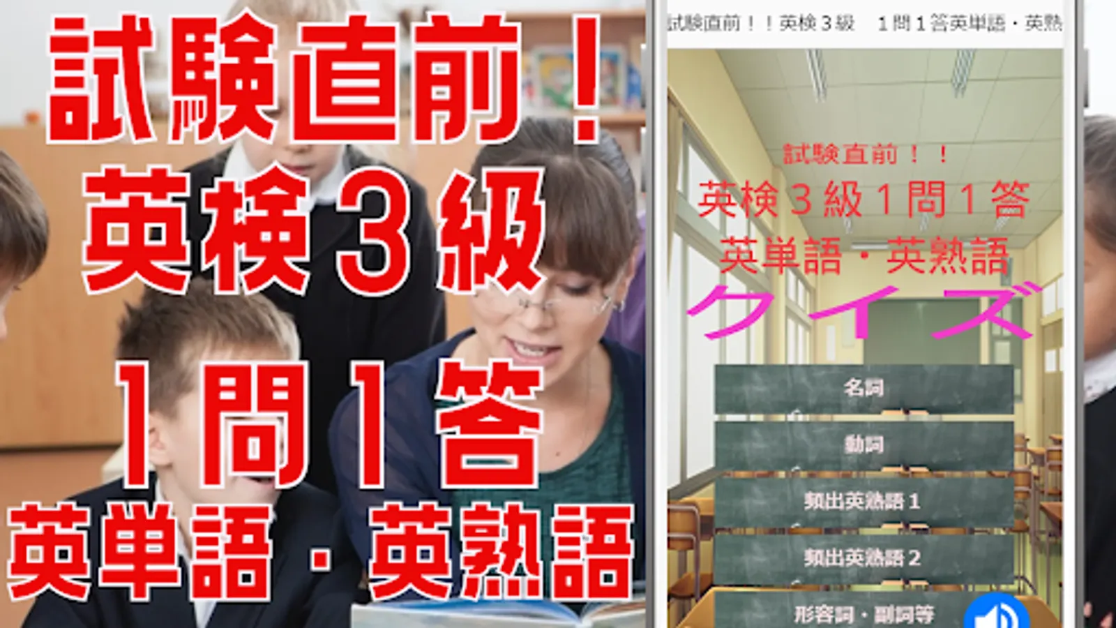 * "Just before the exam! Eiken Grade 3 1 question 1 answer English word/English idiom quiz" app is an unofficial app.