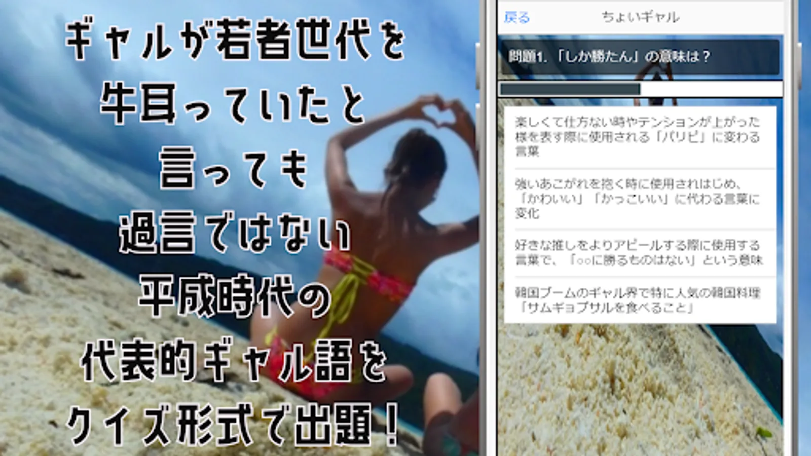 This Gal language quiz is a [Heisei] Gal language quiz app that lets you remember the Gal language of the Heisei era in a quiz format while enjoying it!