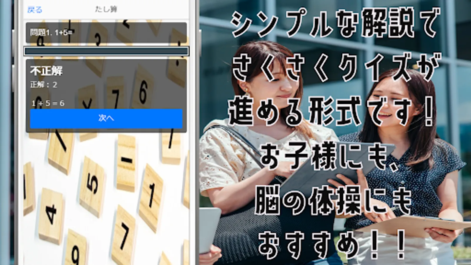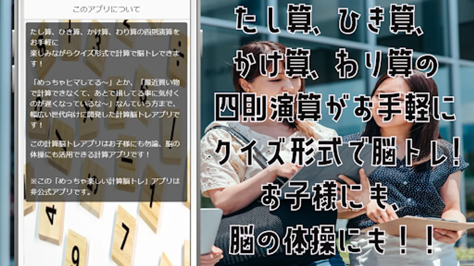 It is a calculation brain training app developed for a wide range of generations, such as "I'm really free" or "I can't calculate by shopping recently, so I'm late to notice that I'm losing it later"!
