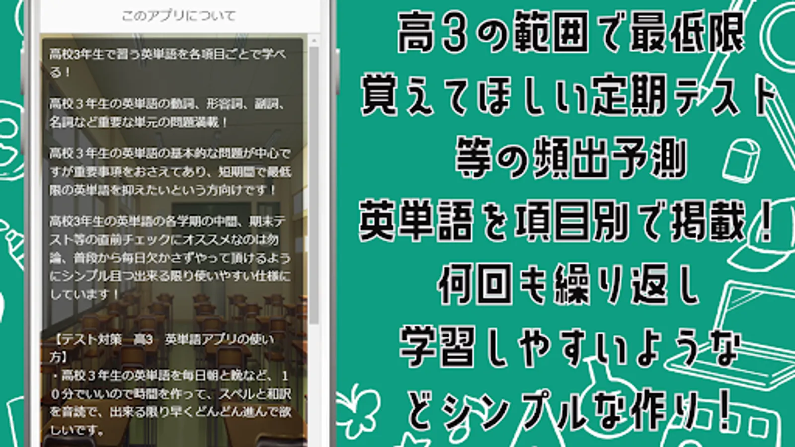 Not only is it recommended for checking the middle of each semester of English words in the third year of high school, just before the final exam, etc., but it is also simple and easy to use so that you can do it every day!