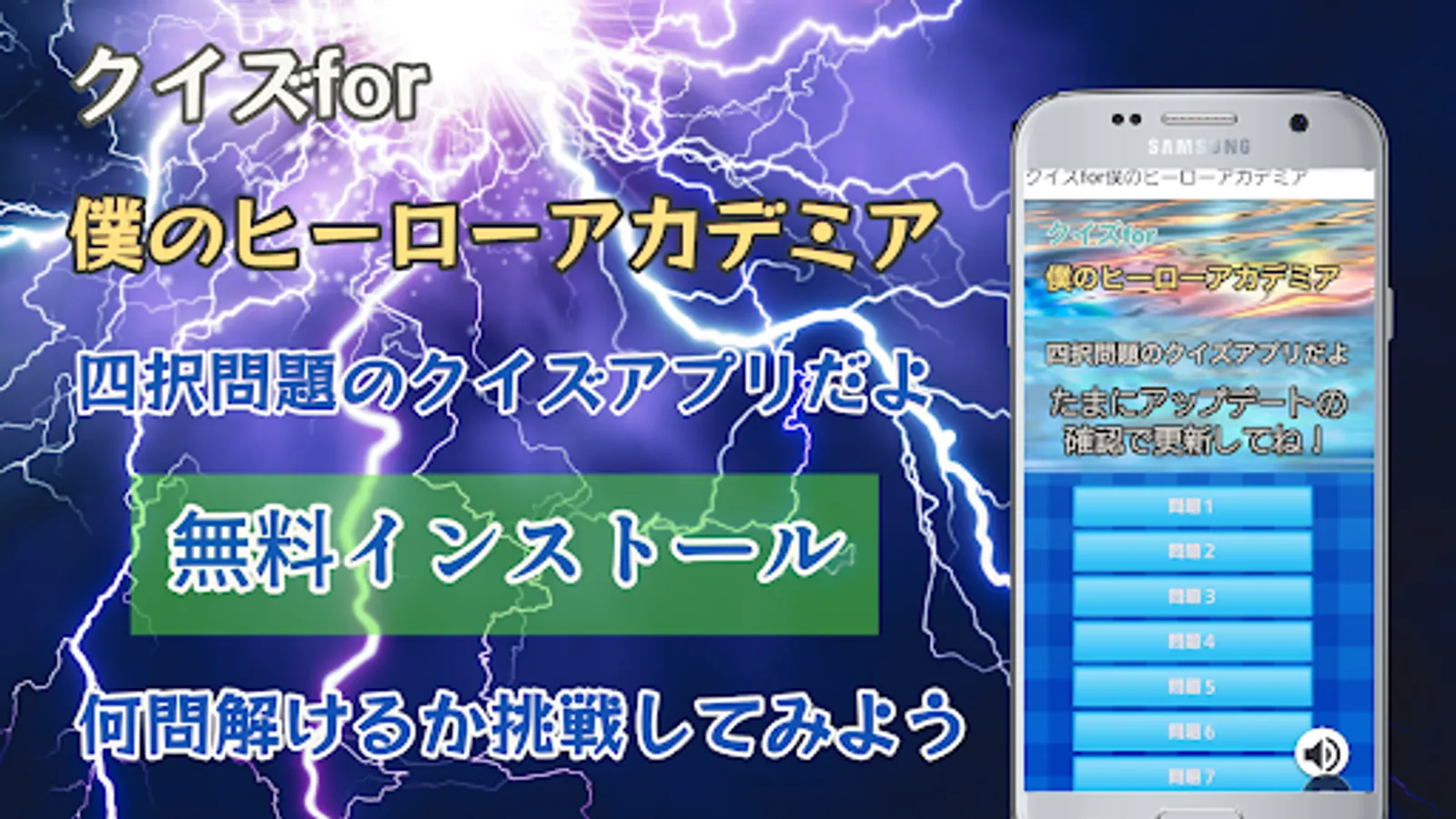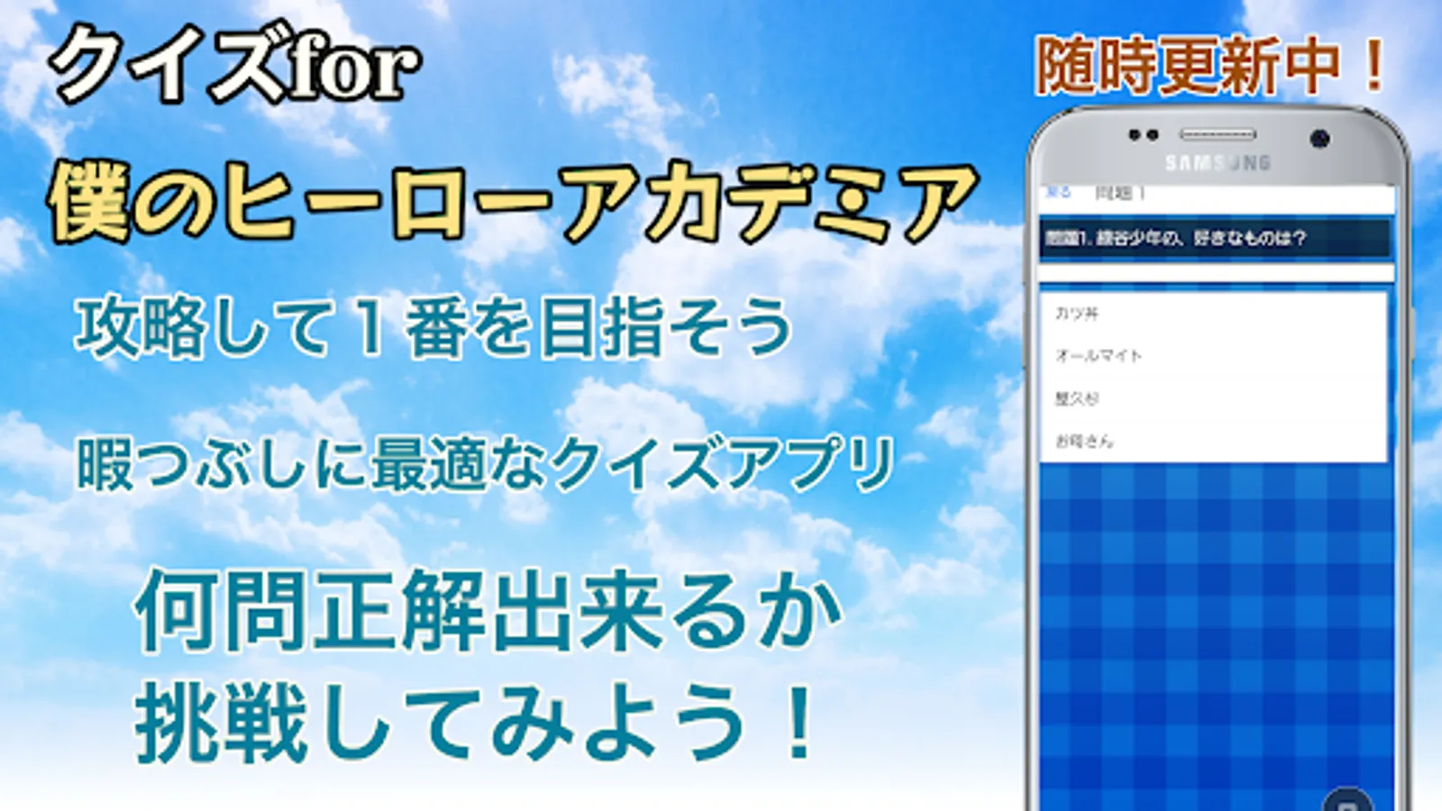 This is an unofficial quiz game app for My Hero Academia, a popular work.