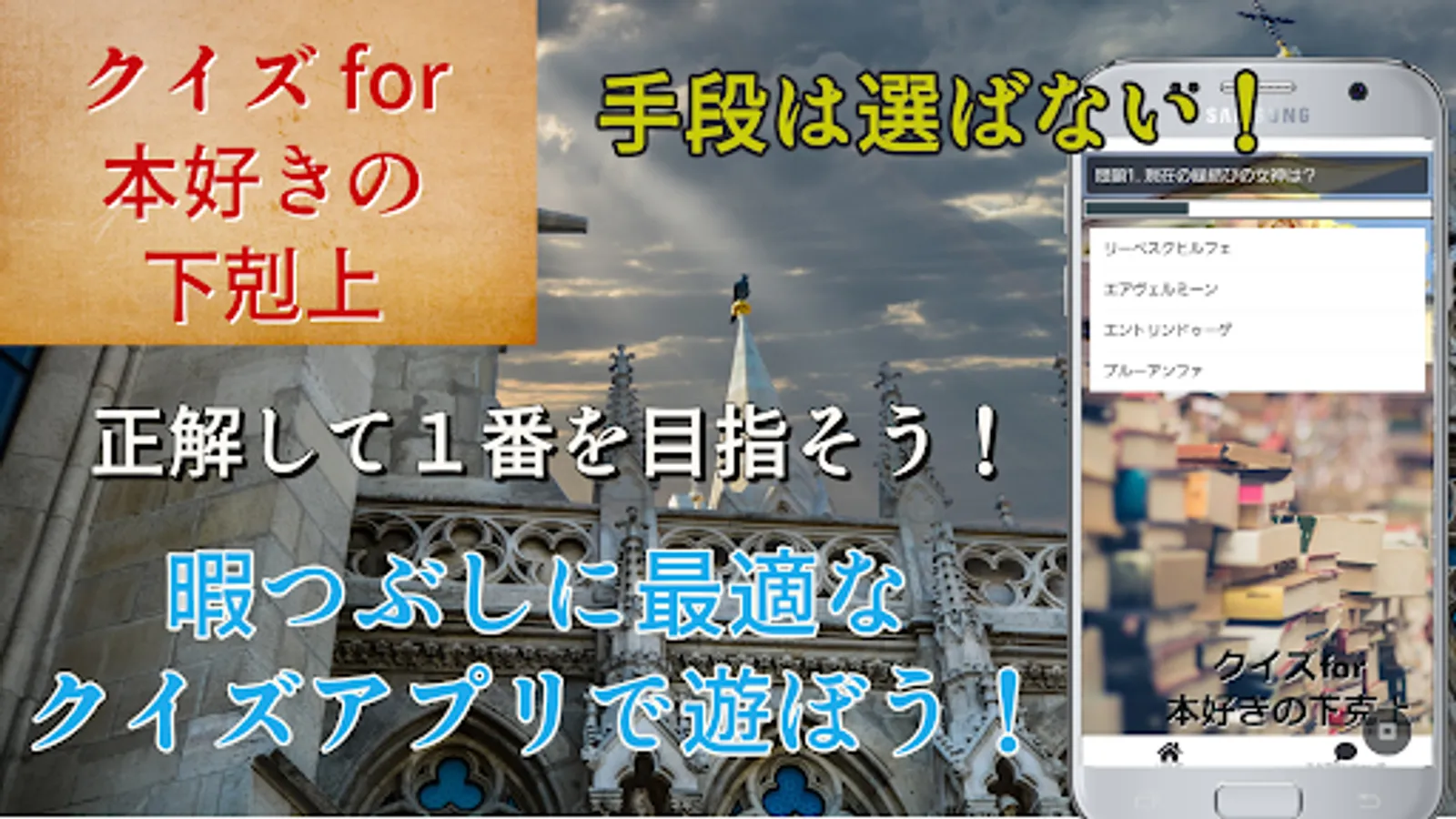 This is a four-choice quiz app with questions from novels, manga, and anime.