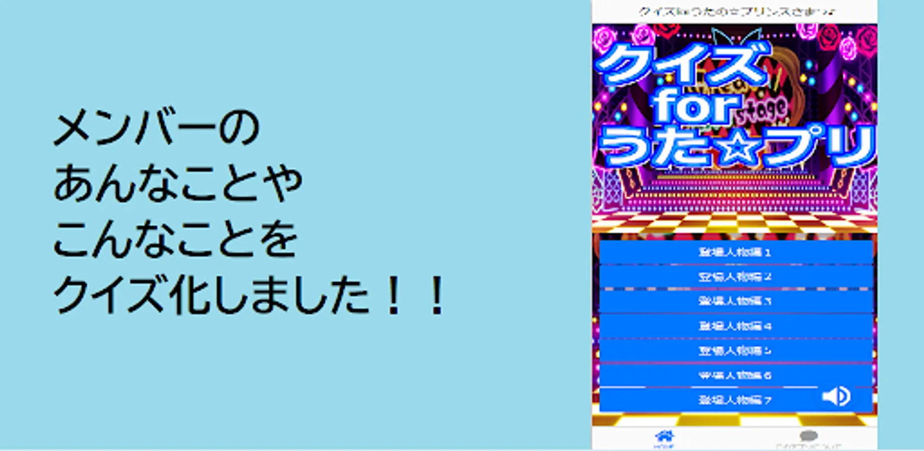 This is an unofficial quiz app that allows you to easily learn about the characters and stories of Uta no Prince-sama.