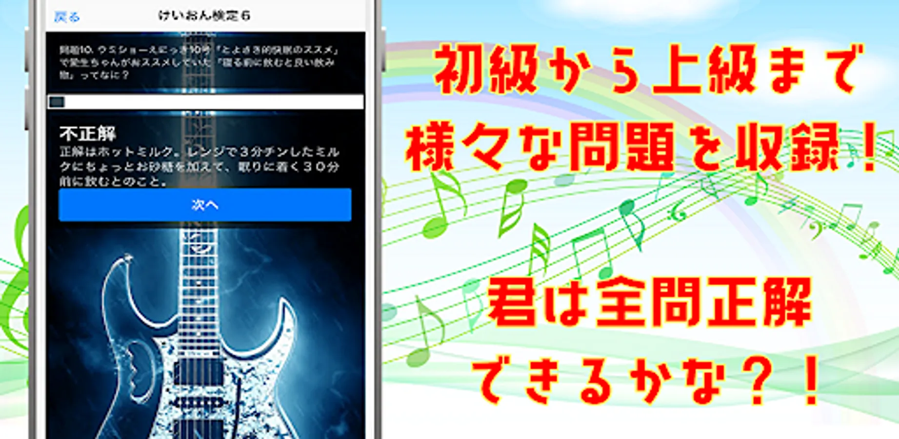 Although this app is unofficial, it provides an opportunity for fans of "K-ON!" to have fun interacting with each other through quizzes.