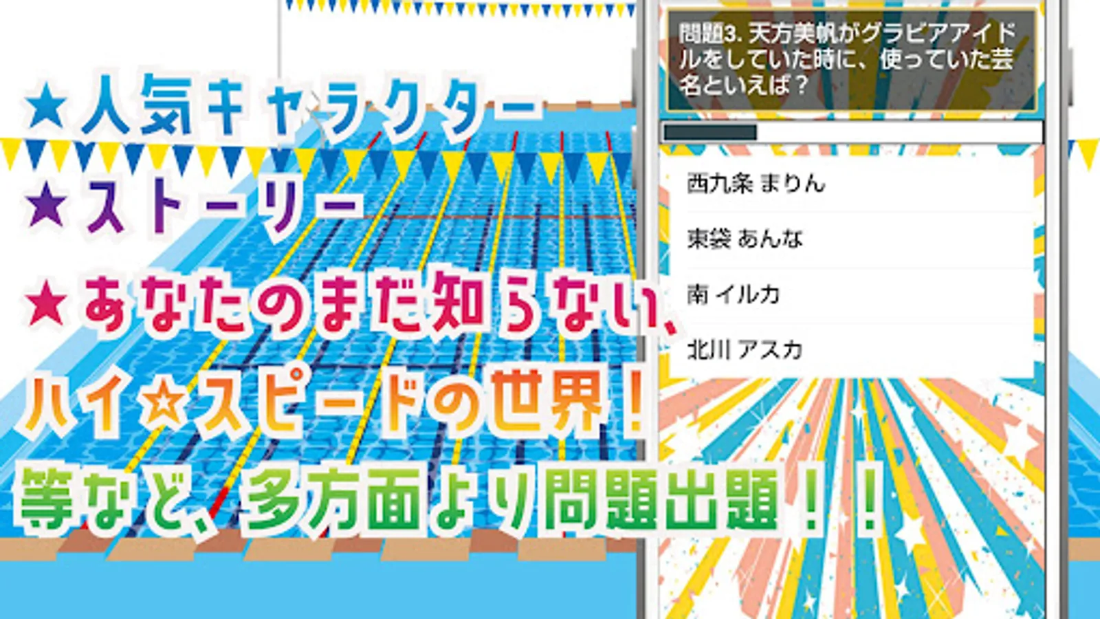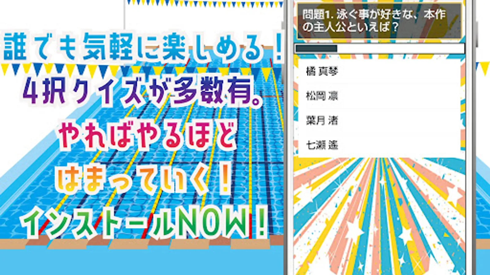 Popular swimming animation high speed Iwatobi High School swimming club quiz app is now available.
