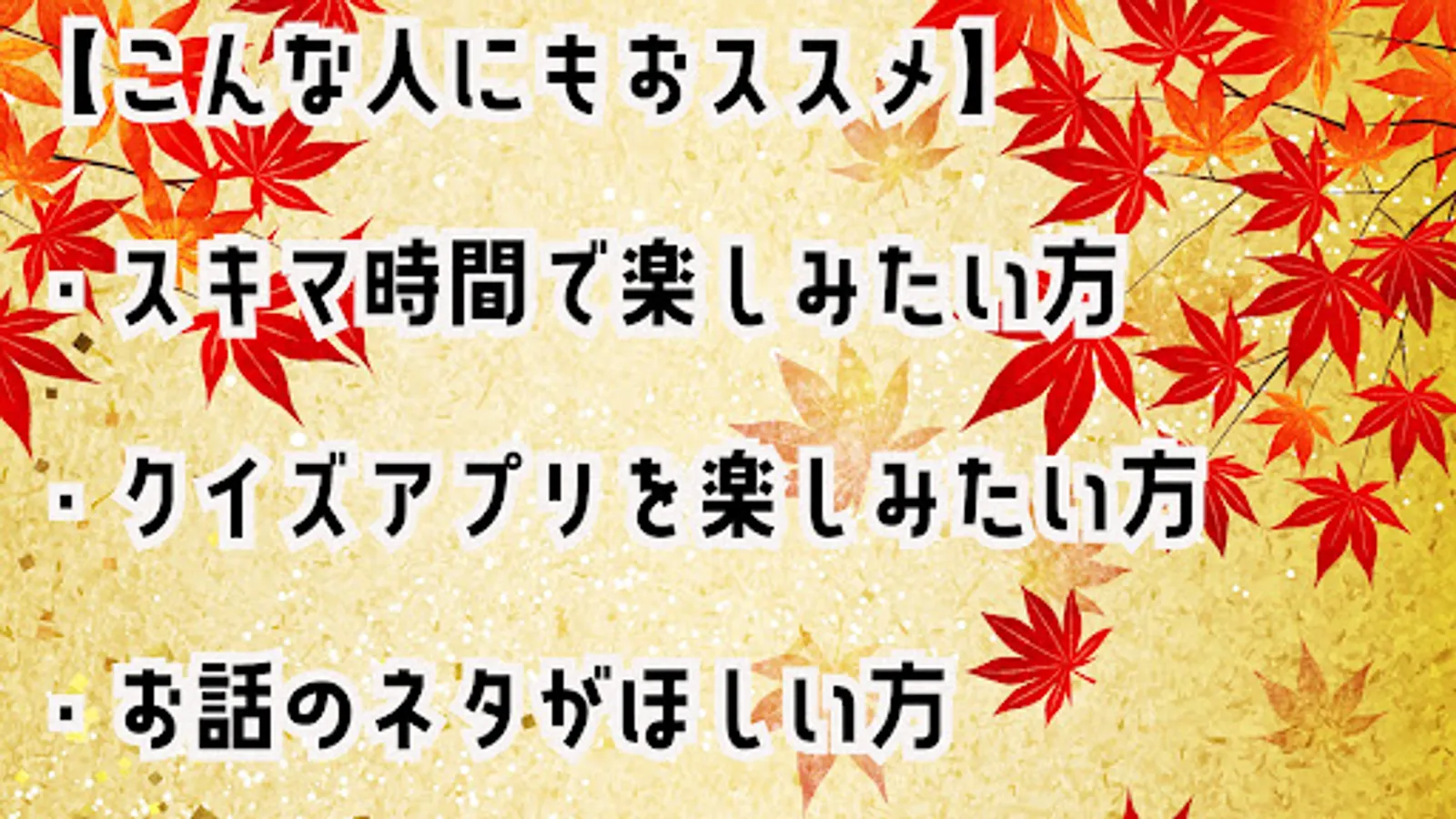 ・ Those who want to enjoy the quiz app