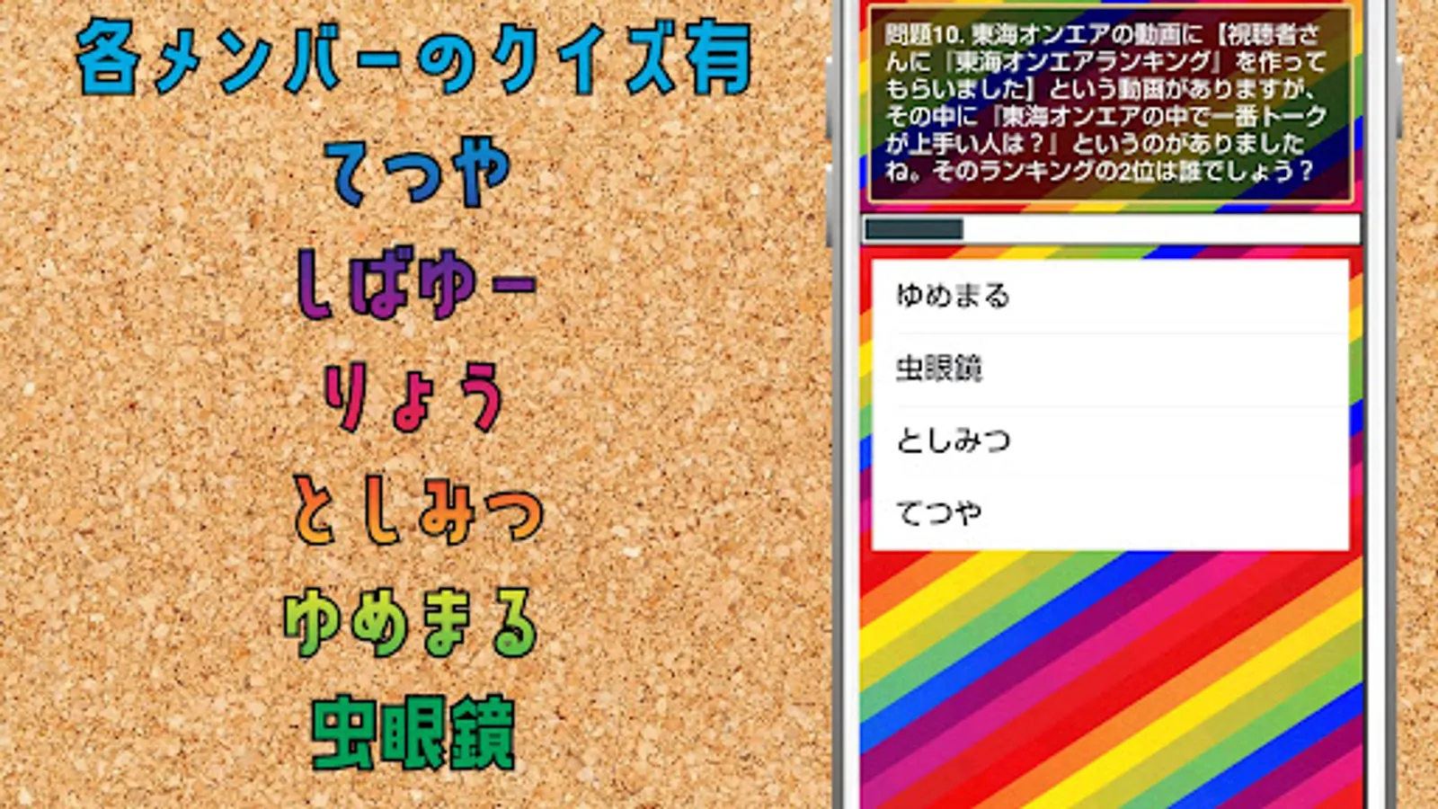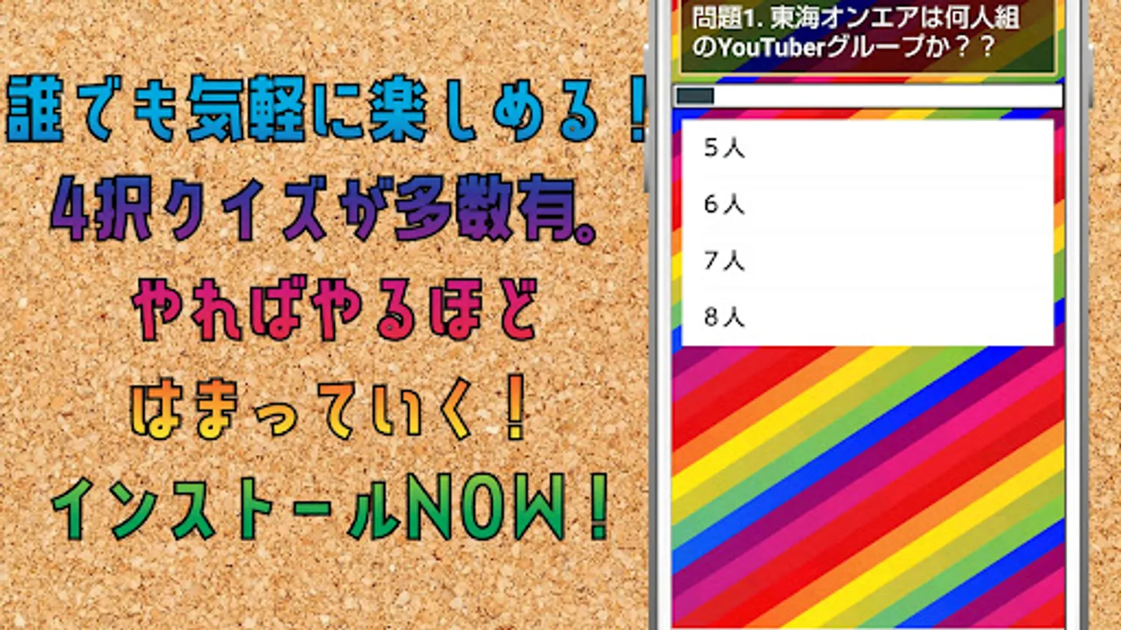 It is a quiz app about the popular youtuber "Tokai OnAir".