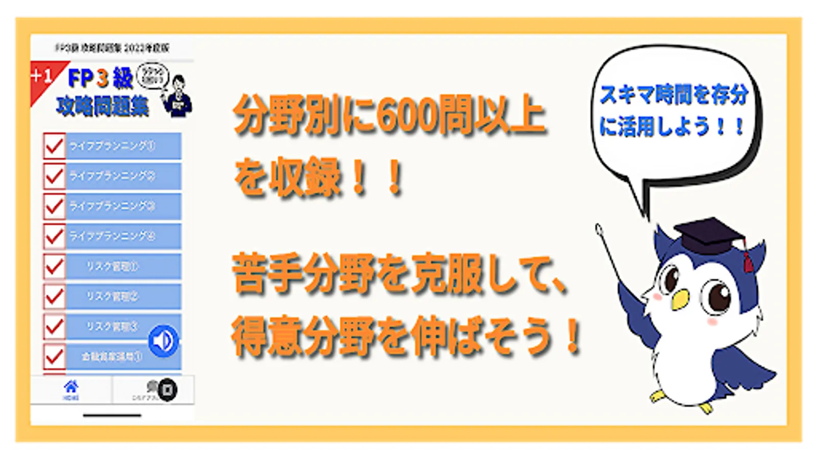 It is a 〇 × type problem collection application of financial planner 3rd grade (FP3 grade).