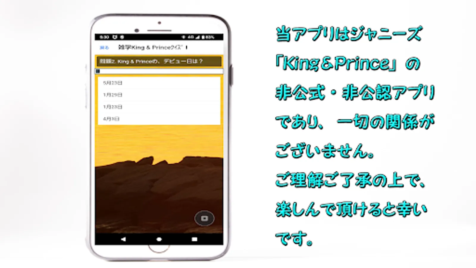 This is a simple quiz appli from Johnny's group King & Prince who guesses the song title by looking at the lyrics of the song.