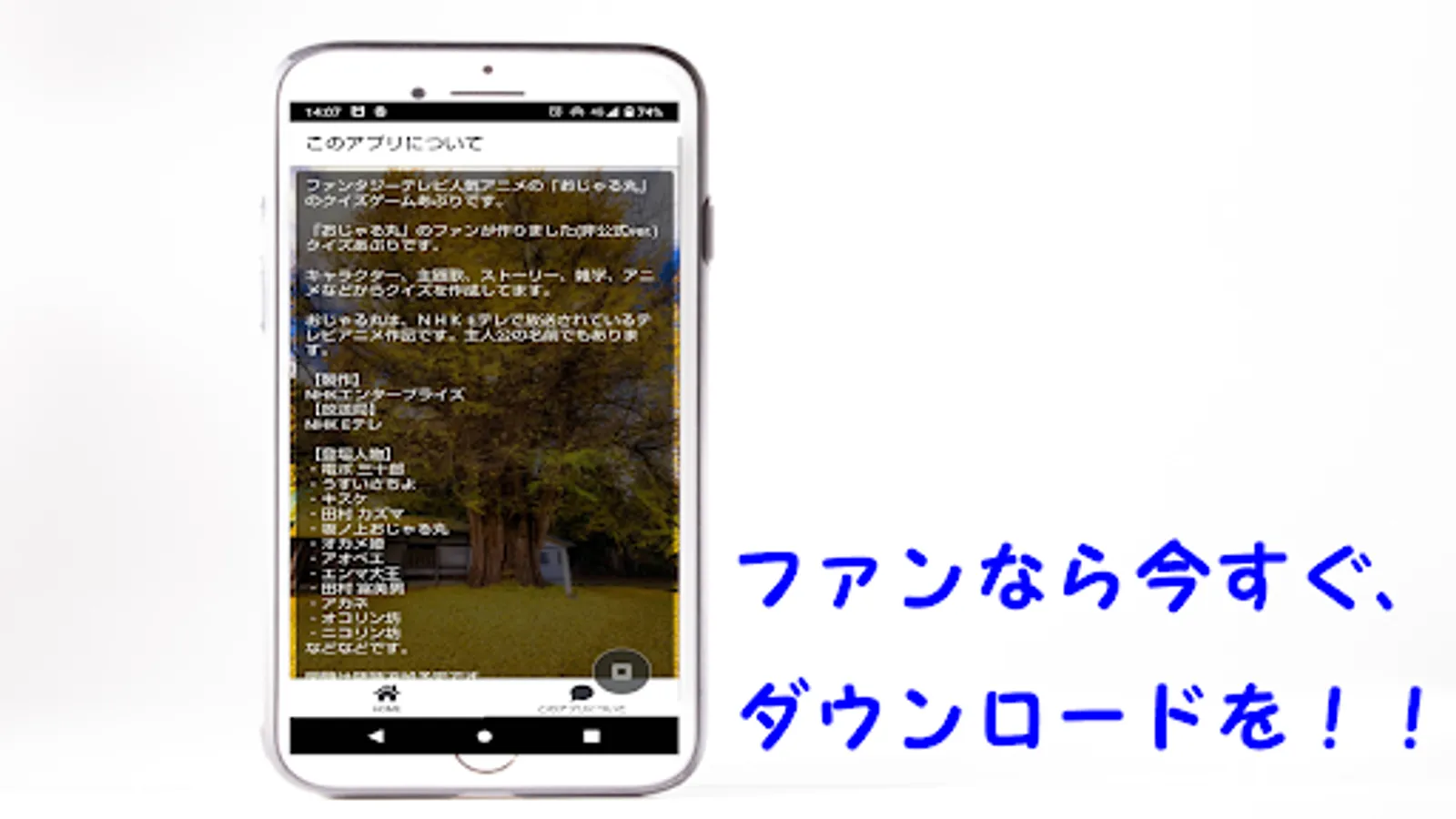 This is a quiz appli made by fans of "Ojarumaru" (unofficial ver.).