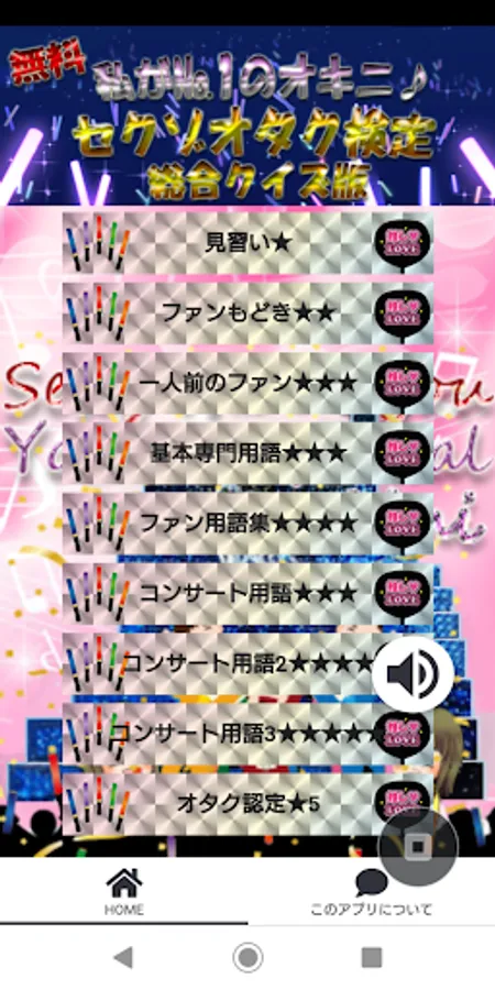 There are 1 to 6 question levels, from basic simple questions to technical terms, fan-only terms, concert terms, and otaku certification exams, for a total of 155 questions.