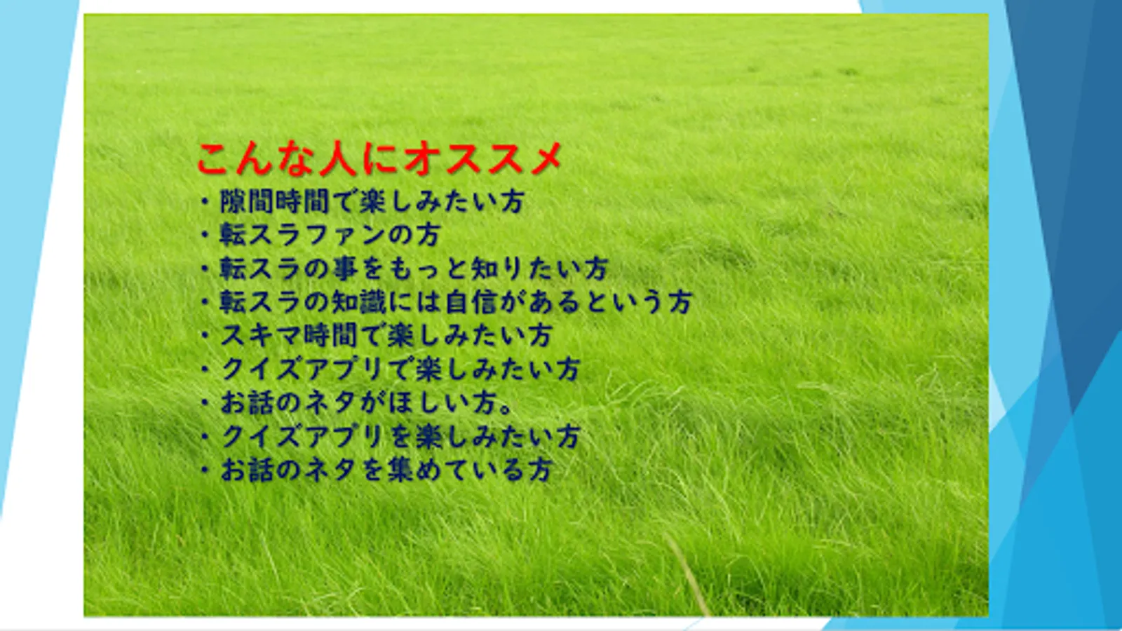 ・ Those who want to enjoy with the quiz app