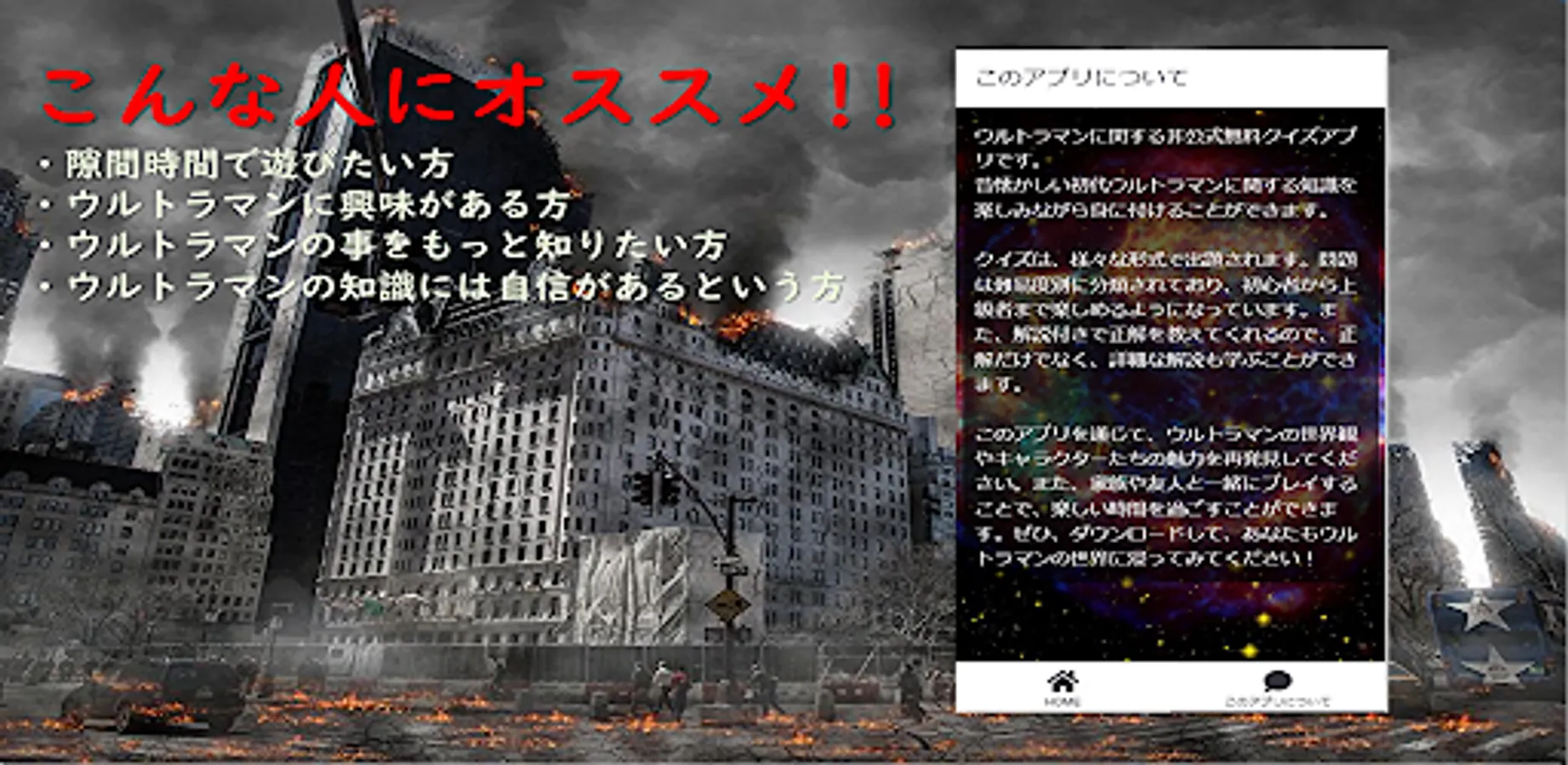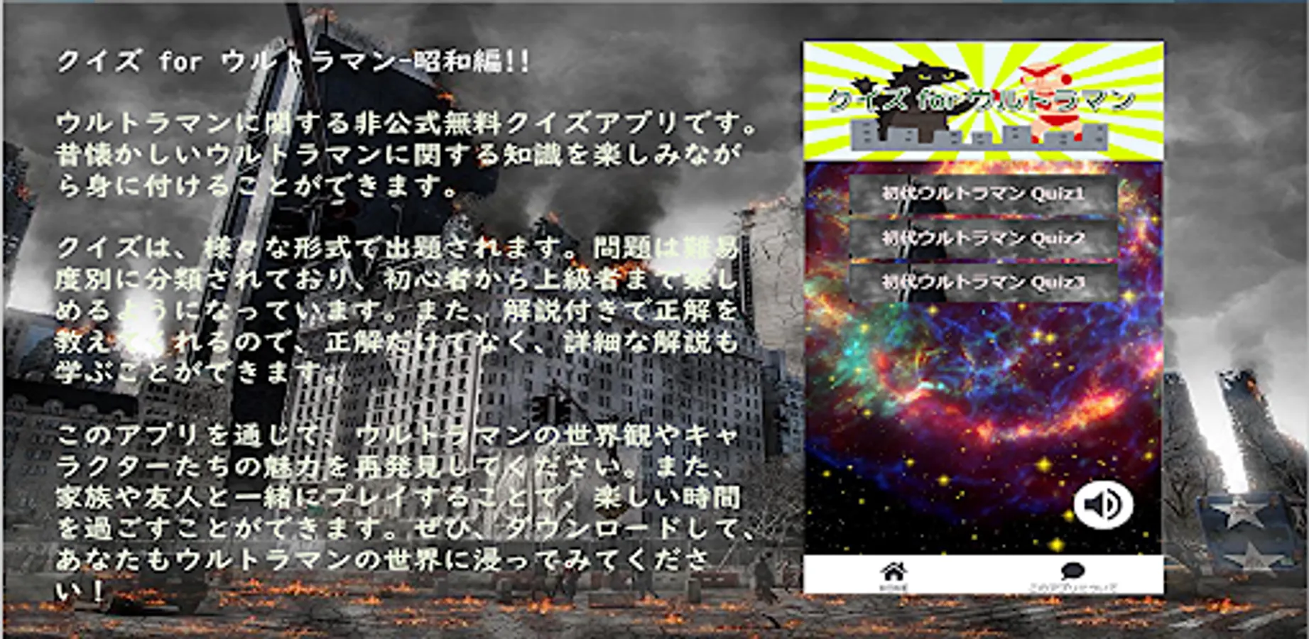 It is an unofficial free quiz app about Ultraman.