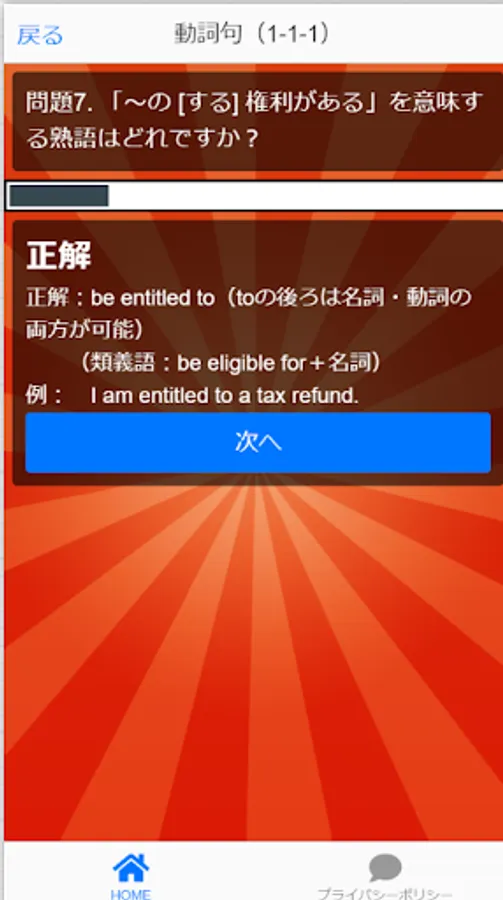 This app is divided into verb phrases and idioms. And the verb phrase is 10 questions x 4 = 40 questions,