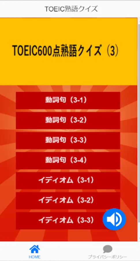This app is an English learning tool aiming for 600 points in TOEIC, and is a free English quiz app targeting semi-intermediate English students (equivalent to Eiken Level 2).