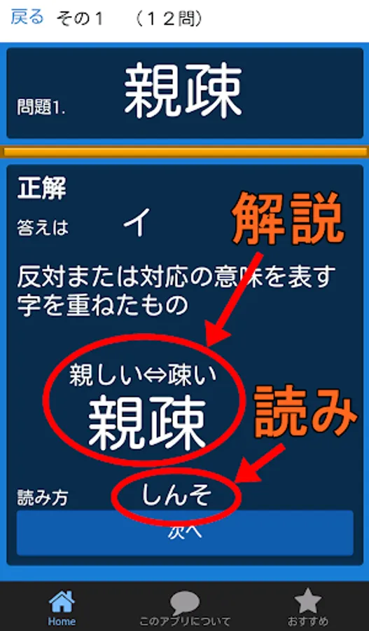 このアプリは、学習したことに対する確認ができるように練習の形式にしてあります。
