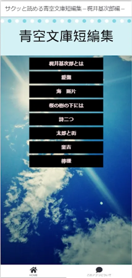 The works introduced here are "Aozora Bunko (https://www.aozora.gr.jp/ )” has been made easier to read as an application.