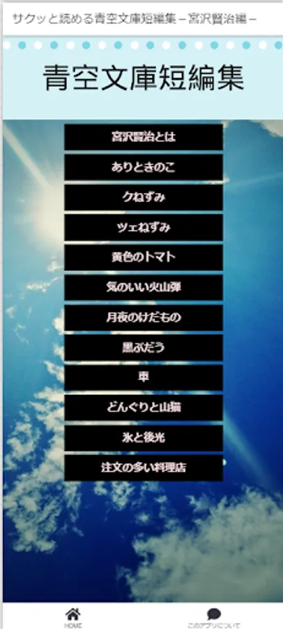 The works introduced here are "Aozora Bunko (https://www.aozora.gr.jp/ )” has been made easier to read as an application.