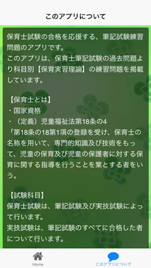 保育士試験の合格を応援する、筆記試験【無料】練習問題のアプリです。