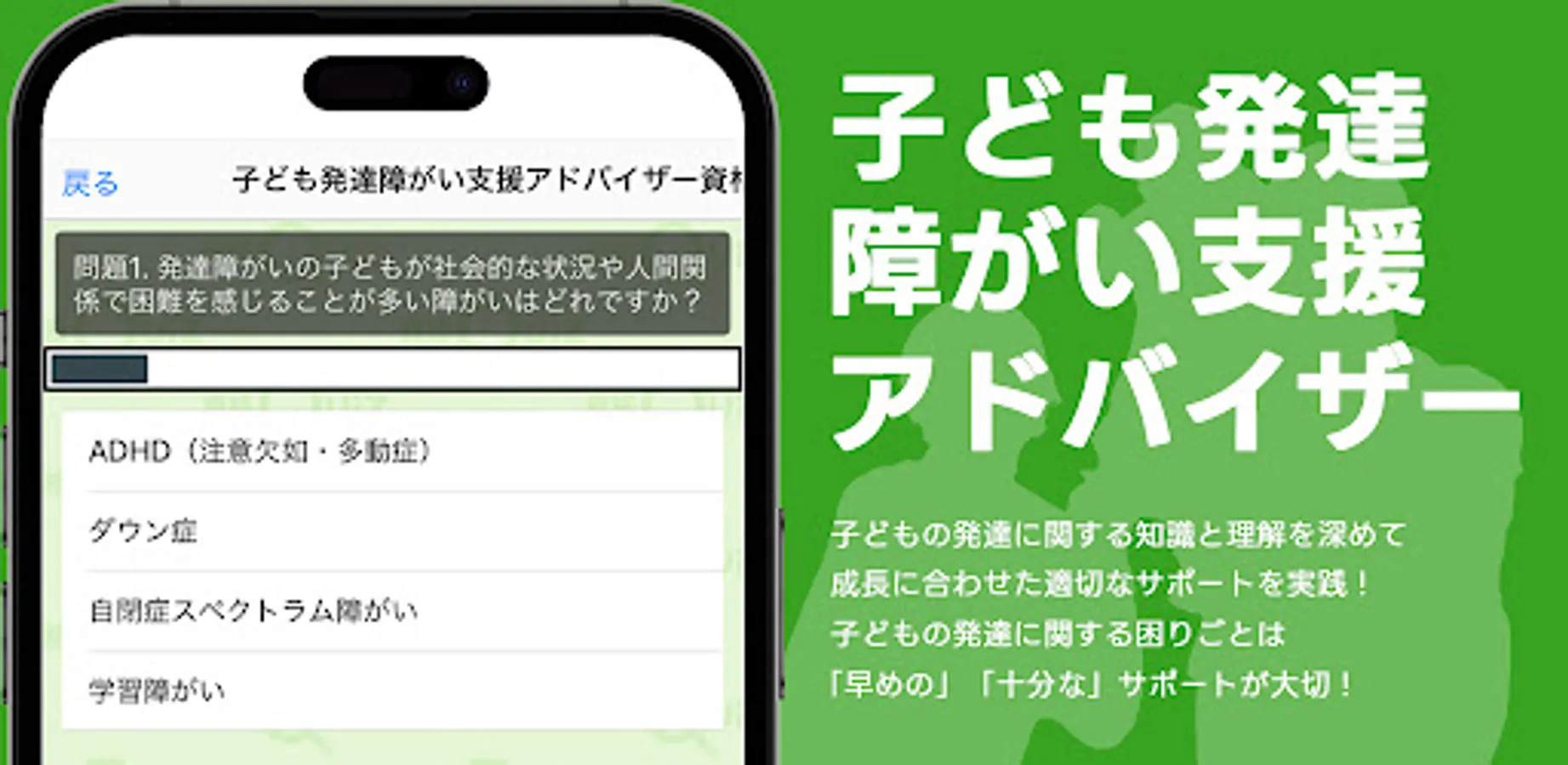 It is a free quiz app for obtaining qualifications for working as a child developmental disability support advisor!