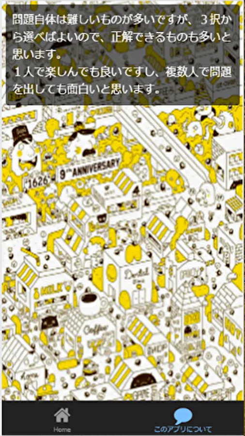 The genre is a variety of trivia quizzes, from easy to difficult problems. It is a problem that you can gain knowledge while solving quizzes with a sense of play. Please try to solve a mystery in a little free time.