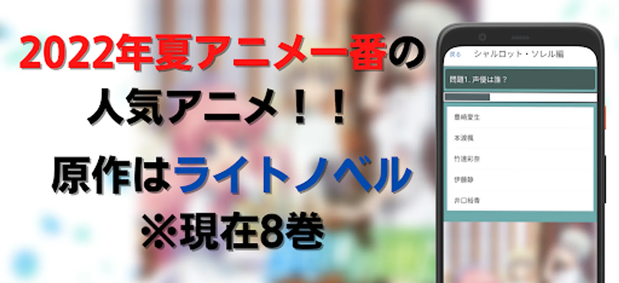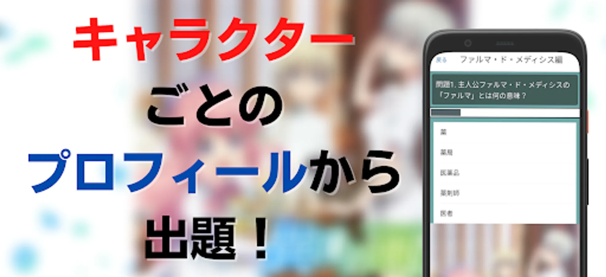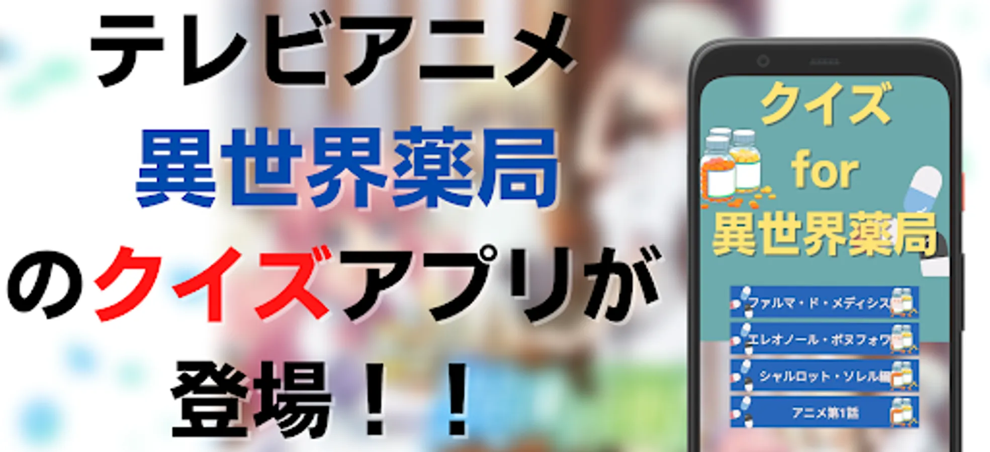 It is a quiz app of another world pharmacy which is the most popular anime in the summer of 2022!