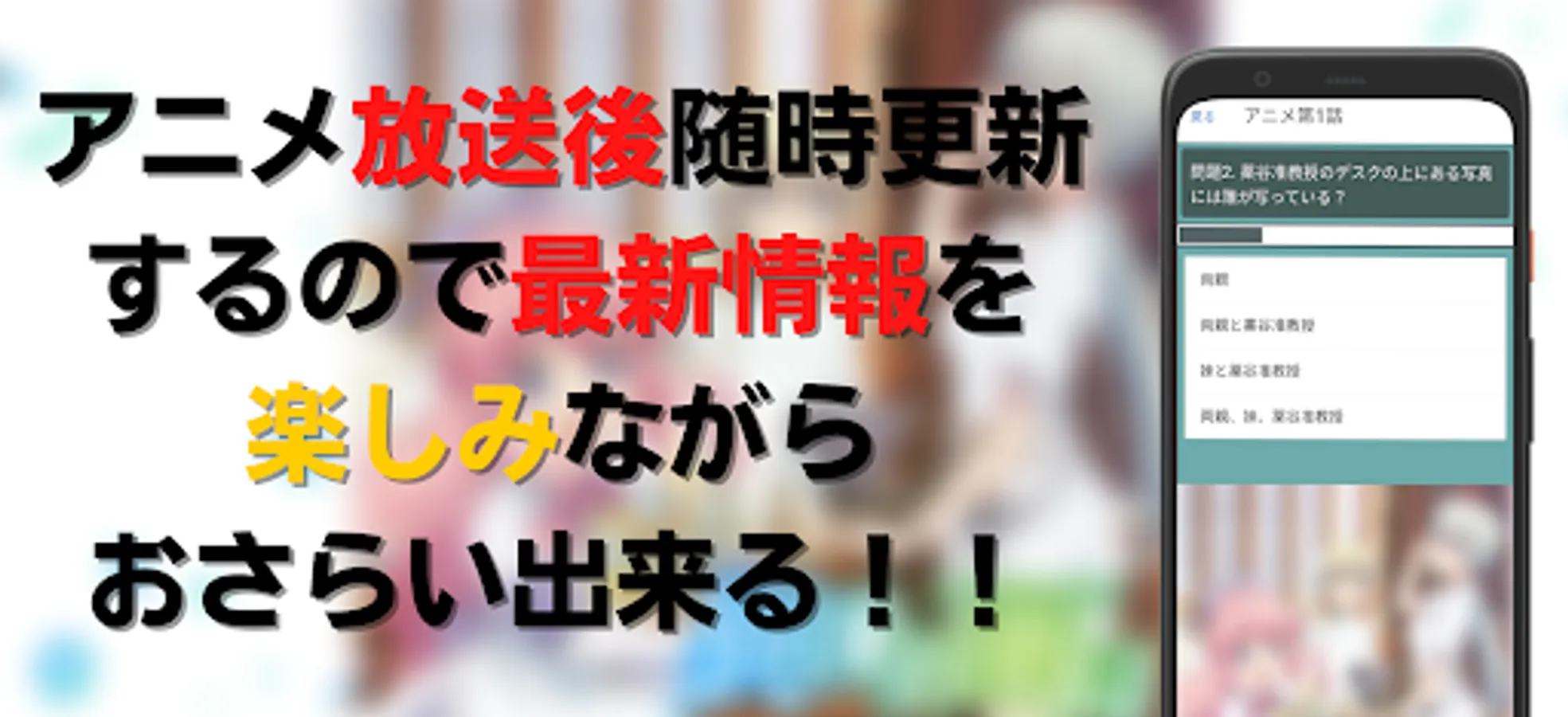 Since the questions will be given separately for each character and the content of the story will be touched on, the specifications will be more enjoyable for anime viewers.