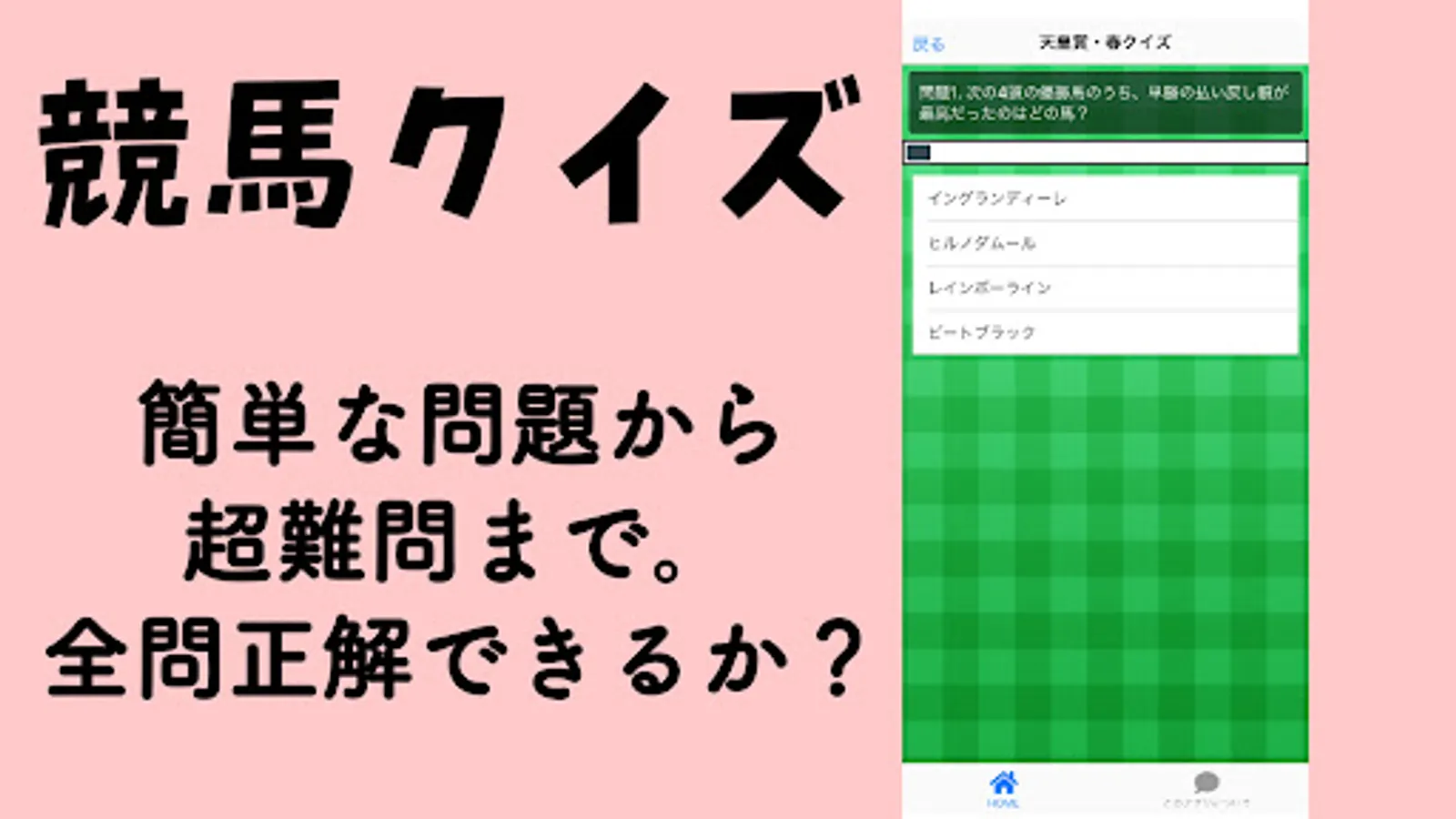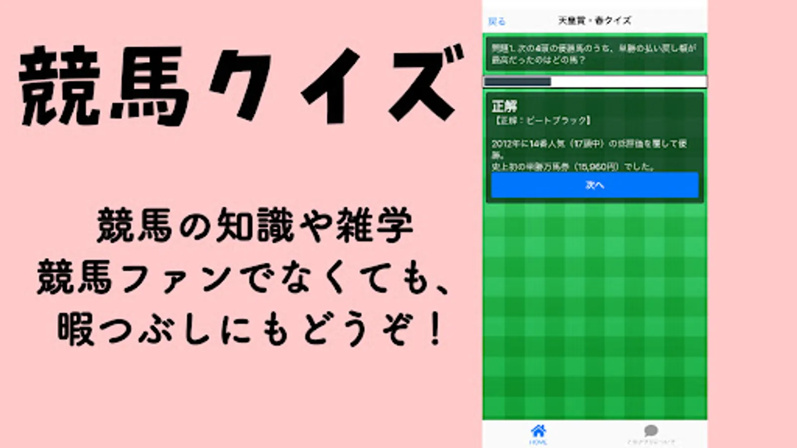 It is a free quiz app about horse racing.