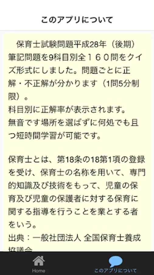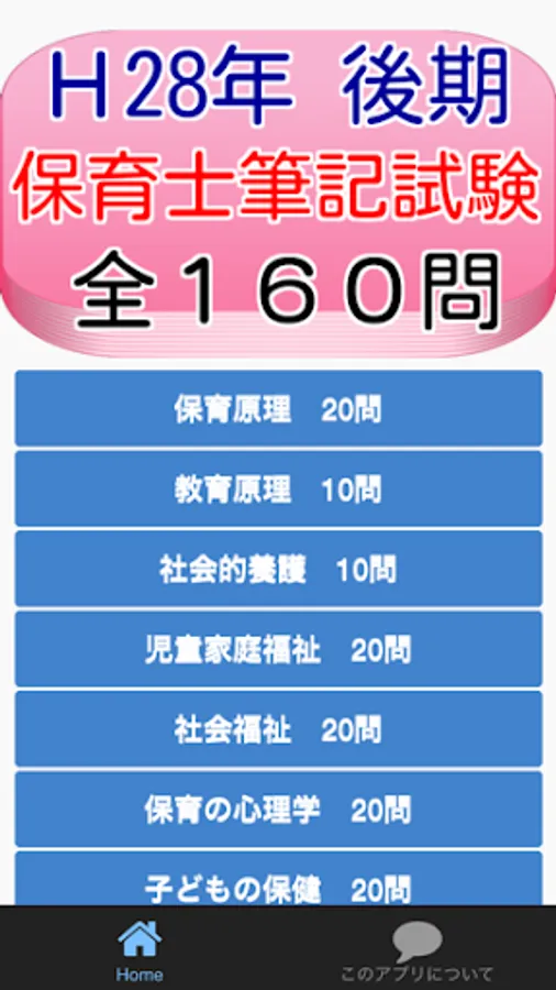 保育士試験問題平成28年(後期実施分・地域限定)筆記問題を9科目別全160問をクイズ形式にしました。問題ごとに正解・不正解が分かります(1問5分制限)。