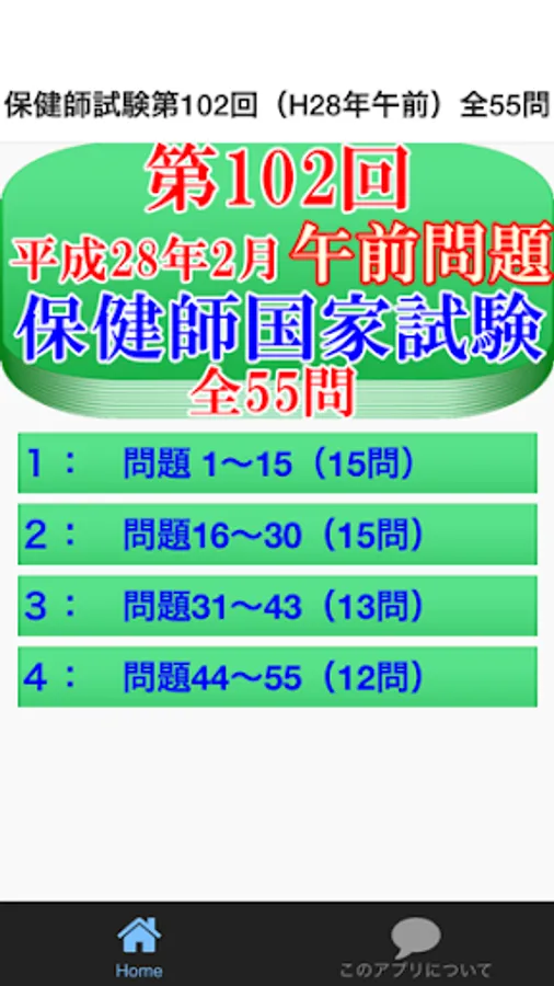 In February of Heisei 20 (2016) the 102 nd health nurse national exam (morning problem) We made 55 questions in quiz format. In case