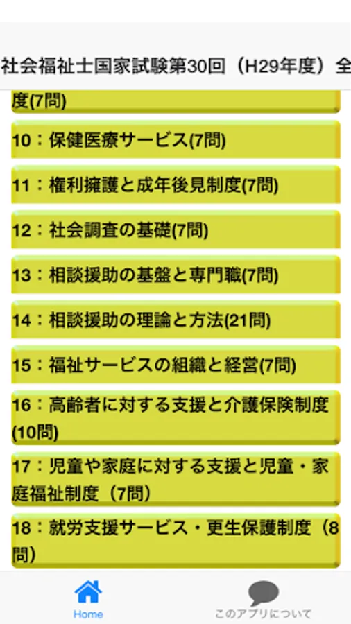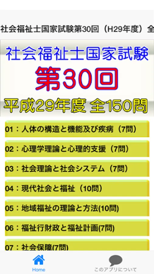 社会福祉士国家試験第30回(平成29年度)全問題150問を18科目別にクイズ形式にしました。