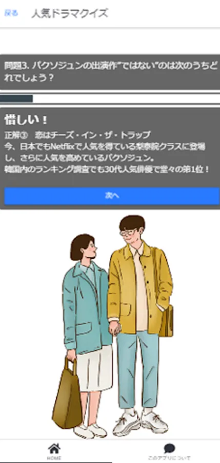 * "Quiz for Korean drama" is an unofficial and unofficial quiz app. It is an unofficial work produced by an individual and has nothing to do with the official work.