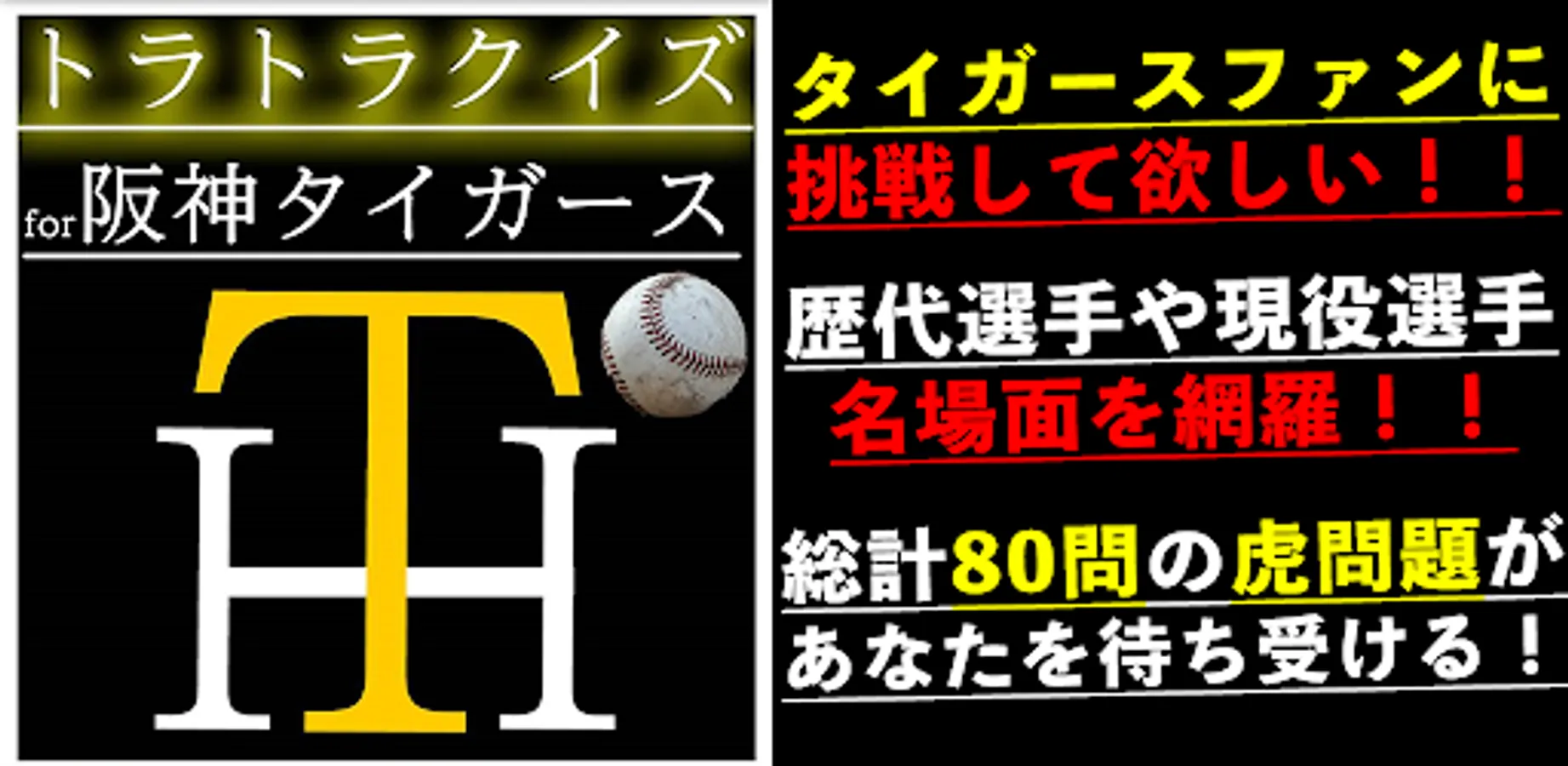 "Tora Tora Quiz App" is a baseball game app that allows you to enjoy quizzes about the Hanshin Tigers, created for fans of the Hanshin Tigers. With this app, you can enjoy learning about Hanshin Tigers players, history, stadiums, cheering songs, and more.