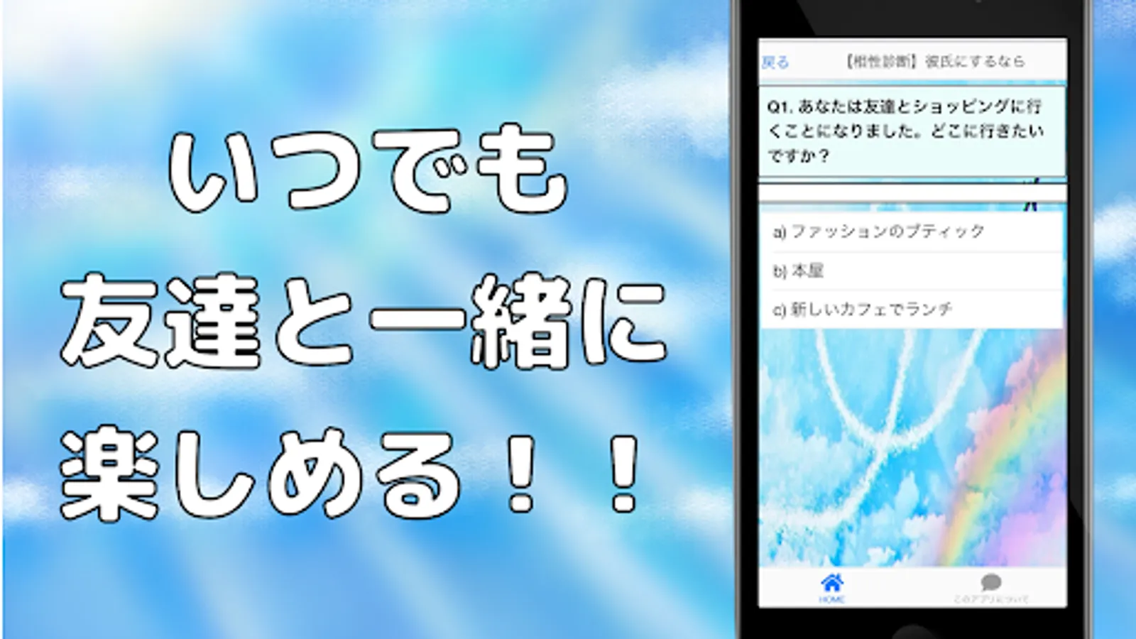 You can enjoy both compatibility diagnosis and quiz in the app!